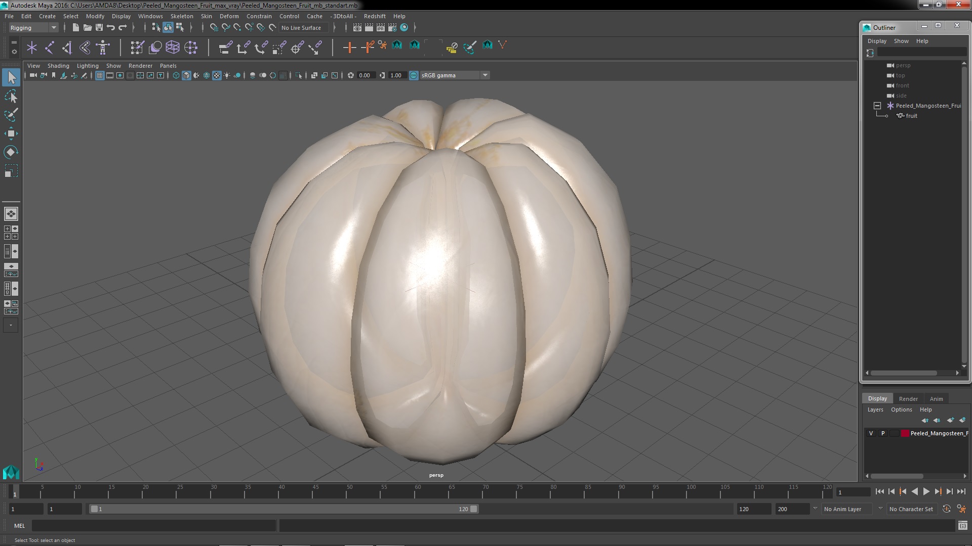 Peeled Mangosteen Fruit is a 3d model of tropical fruit with a hard purple outer shell and sweet, tangy white flesh inside.
