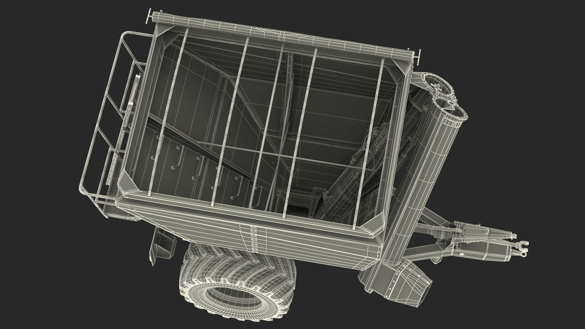 The harvesting grain cart cereal travelling platform production machine, or specialized trailer vehicle.