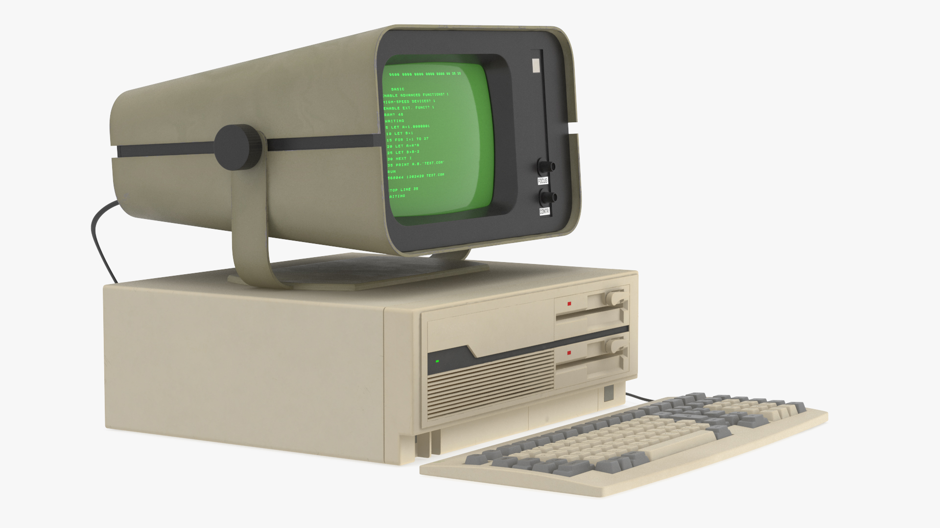 Personal Computer with Retro CRT Monitor is a three-dimensional model of ancient collectible computer with system unit, display (monitor) and keyboard.