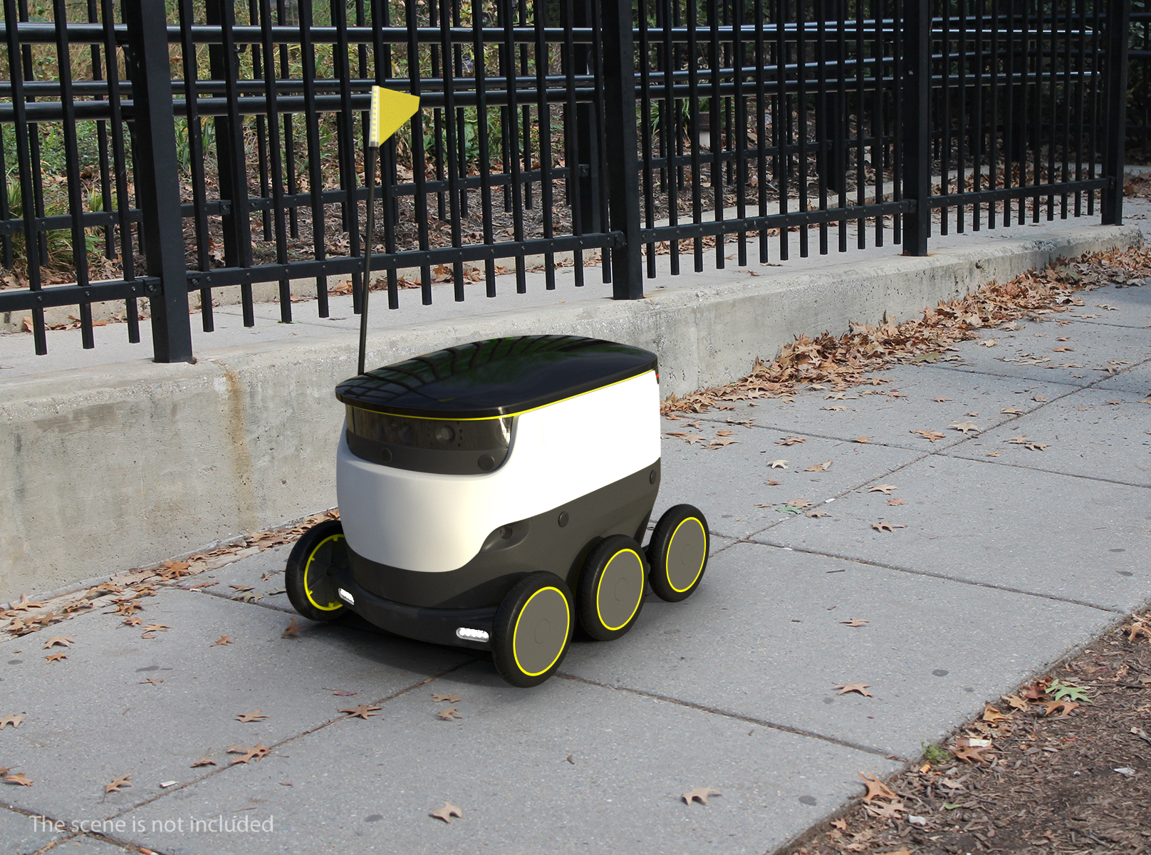 Personal Delivery Robot is a high quality, photo real 3d model that will enhance detail and realism to any of your rendering projects. The model has a fully textured, detailed design that allows for close-up renders, and was originally modeled in 3ds Max 2020 and rendered with V-Ray. Renders have no postprocessing!