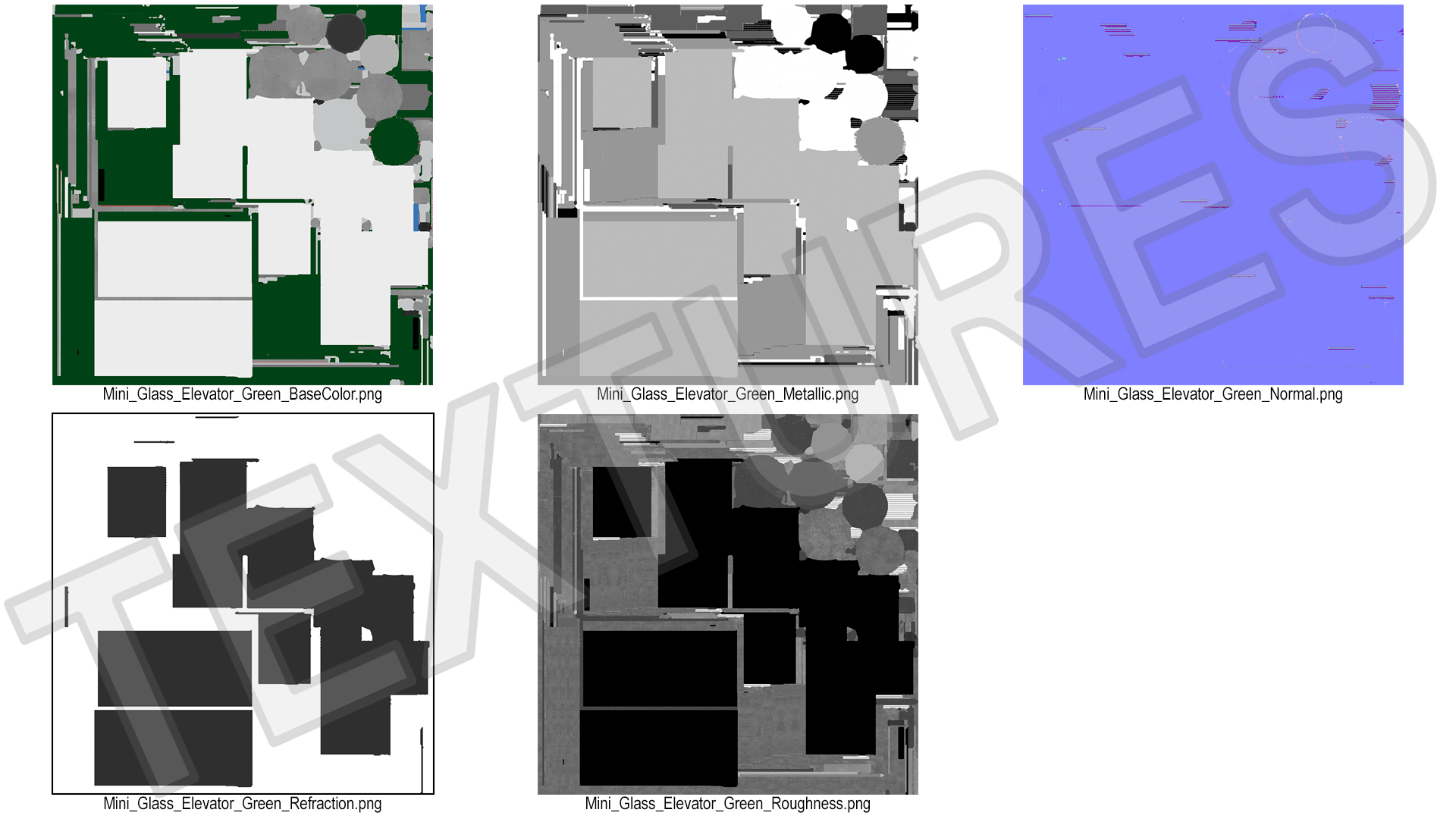 All textures and materials are included and mapped. (All colors can be easily modified.)