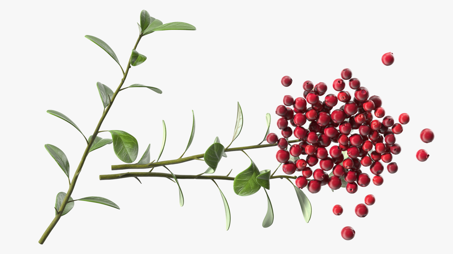 Pile of Cranberries with Branches is a three-dimensional model of set of cranberries with leaves which refers to a collection of cranberries still attached to their branches.