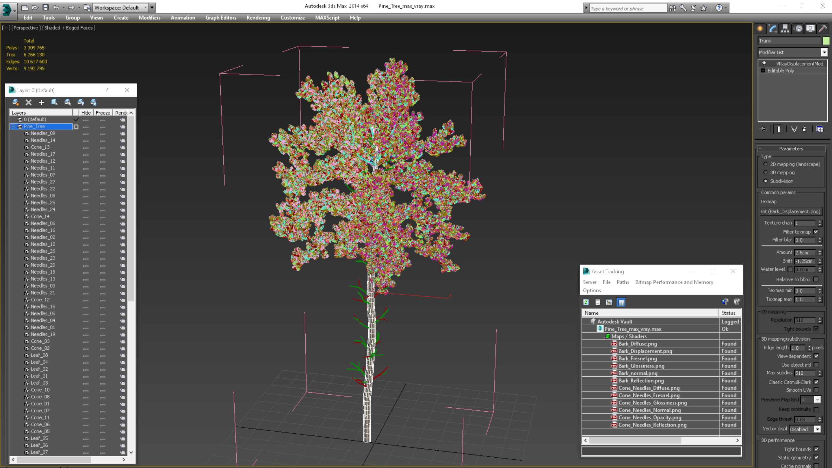 Pine Tree is a high quality, photo real 3d model that will enhance detail and realism to any of your rendering projects. The model has a fully textured, detailed design that allows for close-up renders, and was originally modeled in 3ds Max 2020 and rendered with V-Ray. Renders have no postprocessing!
