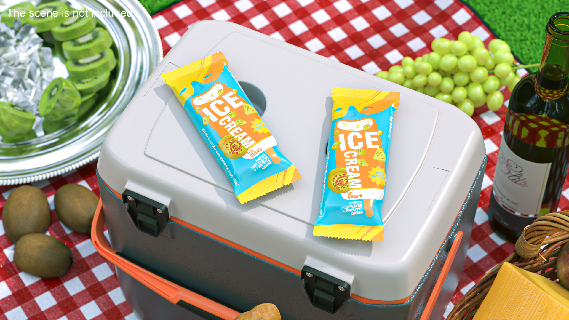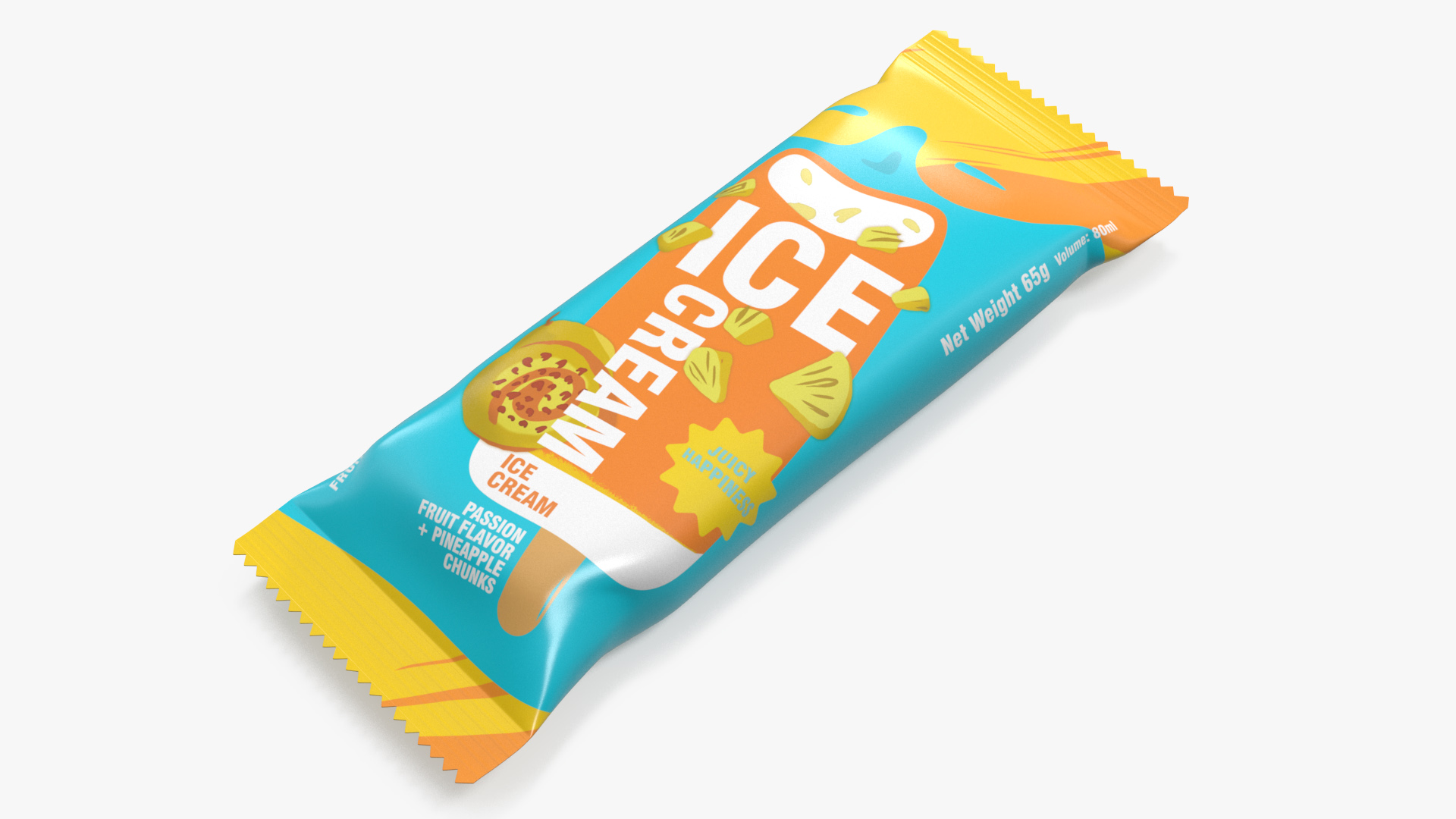 Pineapple Ice Cream Packaging is a three-dimensional model of packed sweet frozen dessert that is a popular fruit type sweet cold snack.