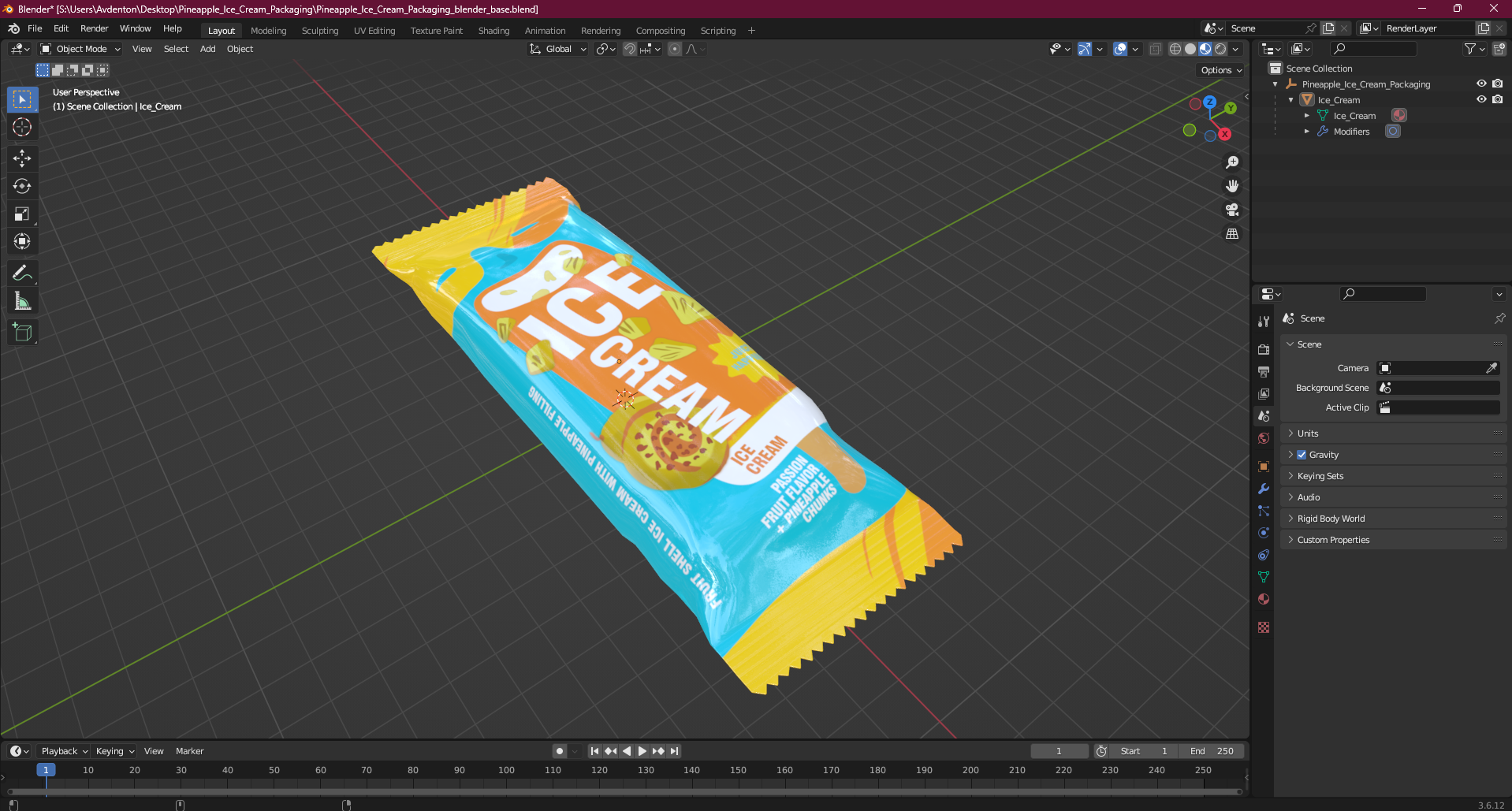 Pineapple Ice Cream Packaging is a high quality, photo real 3d model that will enhance detail and realism to any of your rendering projects. The model has a fully textured, detailed design that allows for close-up renders, and was originally modeled in 3ds Max 2020 and rendered with V-Ray. Renders have no postprocessing!