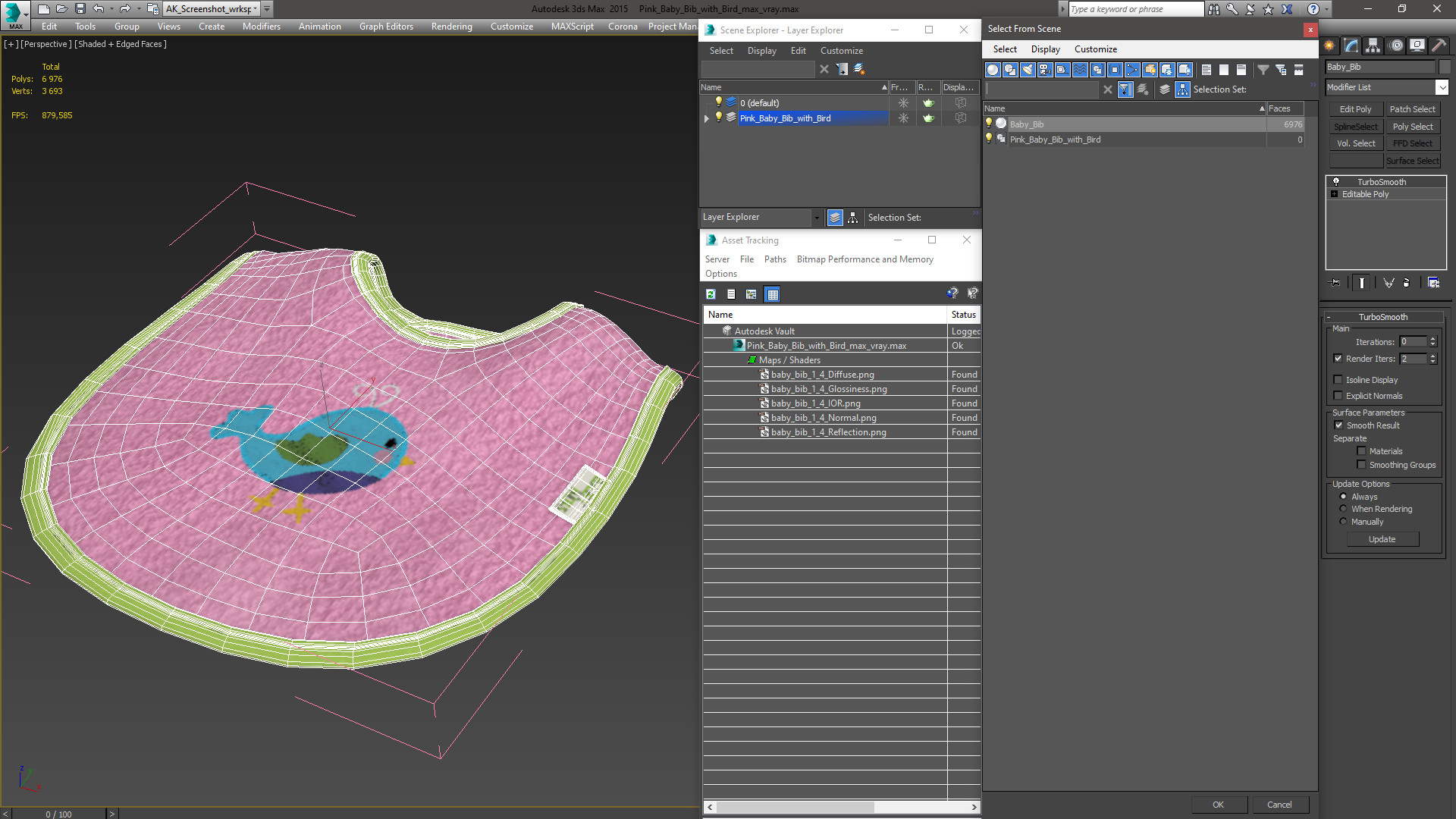 Pink Baby Bib with Bird is a high quality, photo real 3d model that will enhance detail and realism to any of your rendering projects. The model has a fully textured, detailed design that allows for close-up renders, and was originally modeled in 3ds Max 2020 and rendered with V-Ray. Renders have no postprocessing!