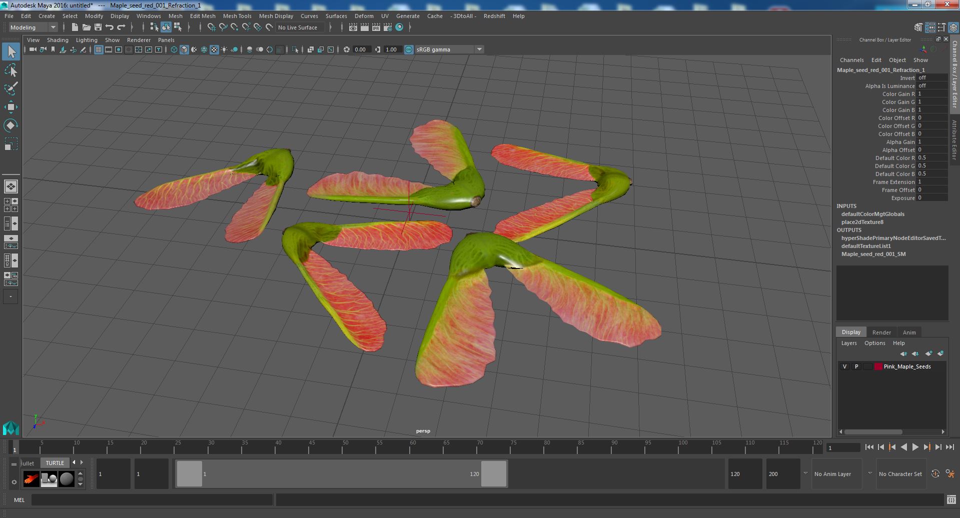 Pink Maple Seeds is a three-dimensional model of a popular, propeller shape fruits of maple tree plant.
