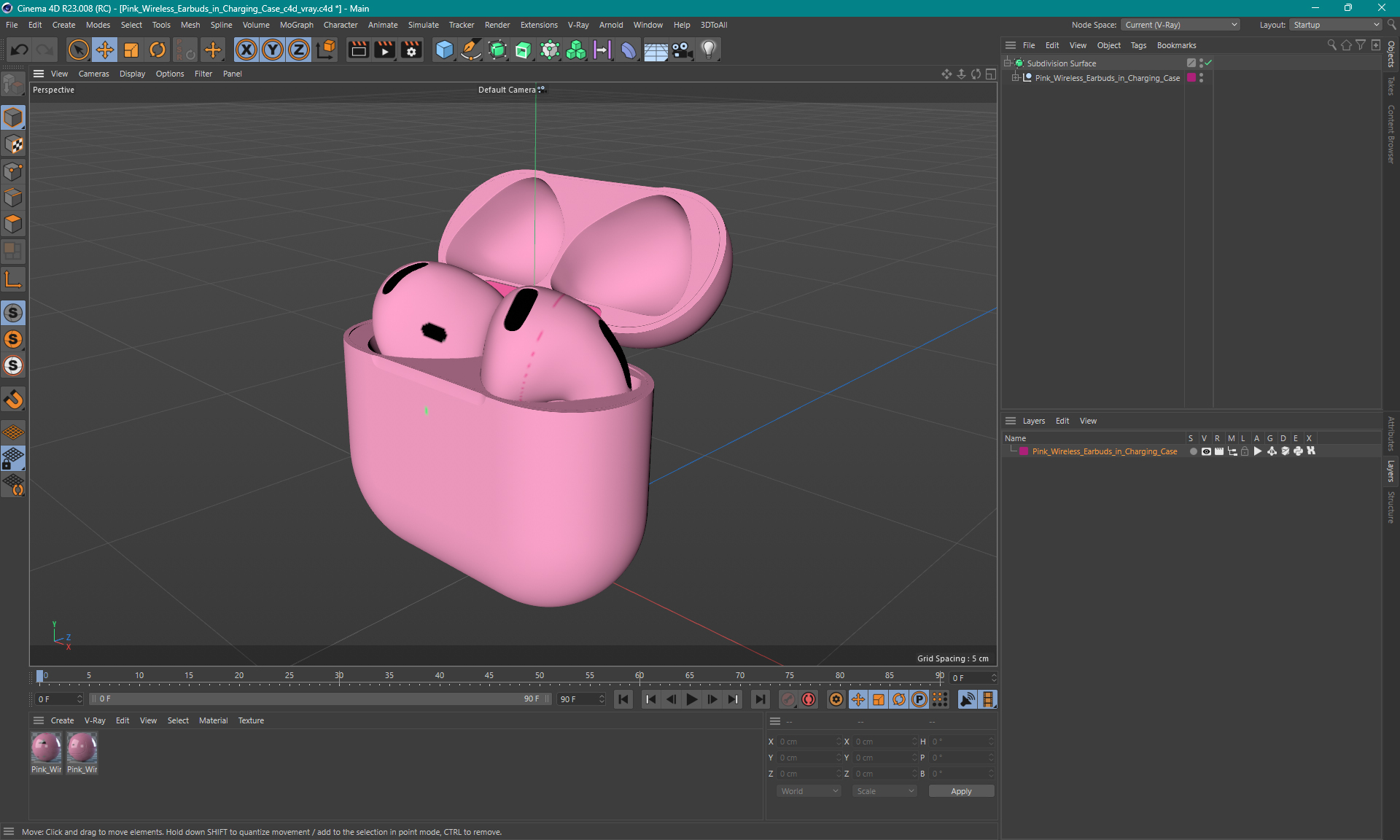 Pink Wireless Earbuds in Charging Case is a high quality, photo real 3d model that will enhance detail and realism to any of your rendering projects. The model has a fully textured, detailed design that allows for close-up renders, and was originally modeled in 3ds Max 2020 and rendered with V-Ray. Renders have no postprocessing!