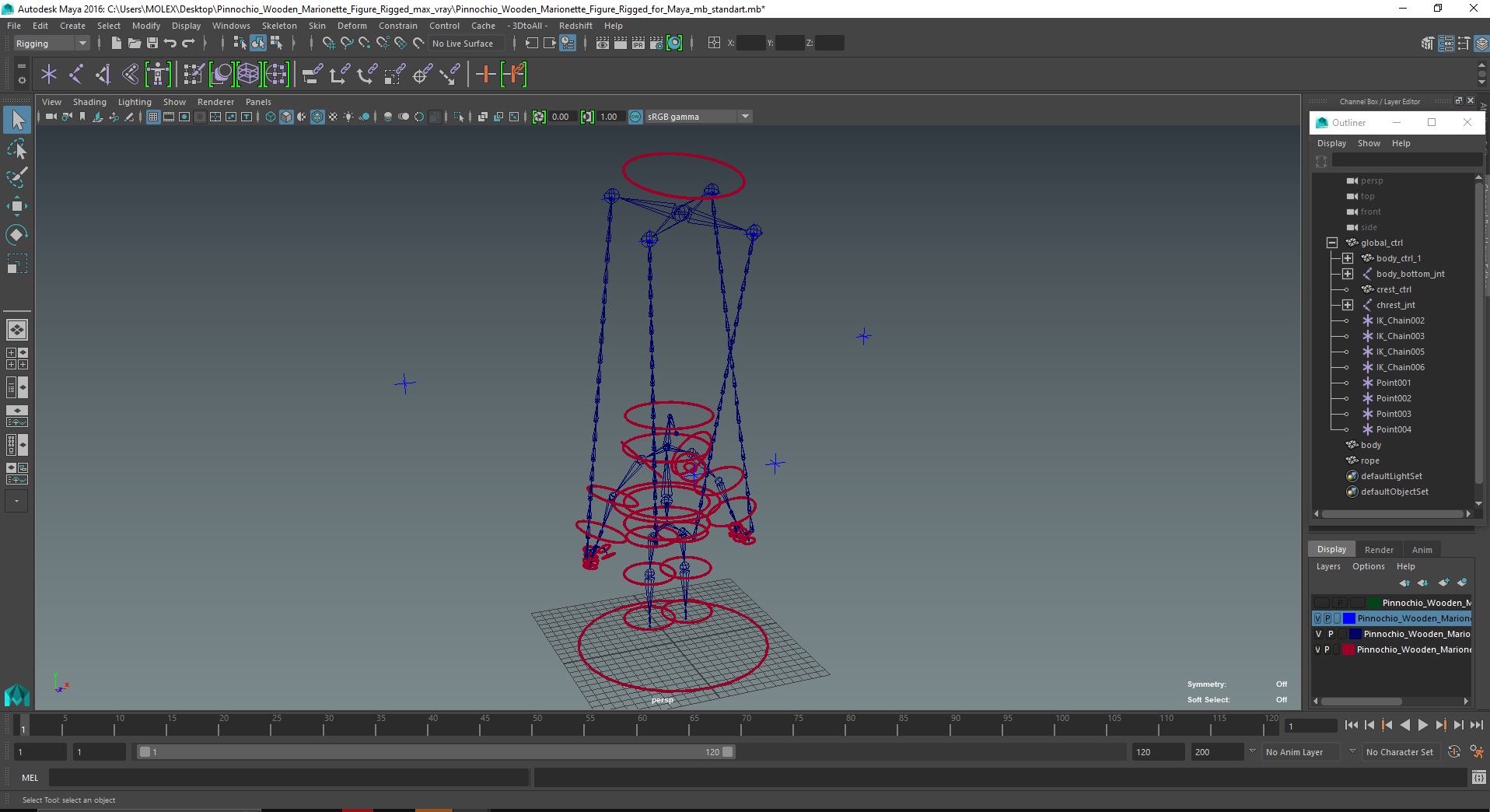 Pinnochio Wooden Marionette Figure Rigged for Maya is fully rigged and is ready to be animated in Maya. You can easily position it the way you need or animate it the way your project requires. See the screenshots to get an idea of how rigging works. The pose of the model on the render images is an example and can be recreated using rig, it is not initially included into the product.
