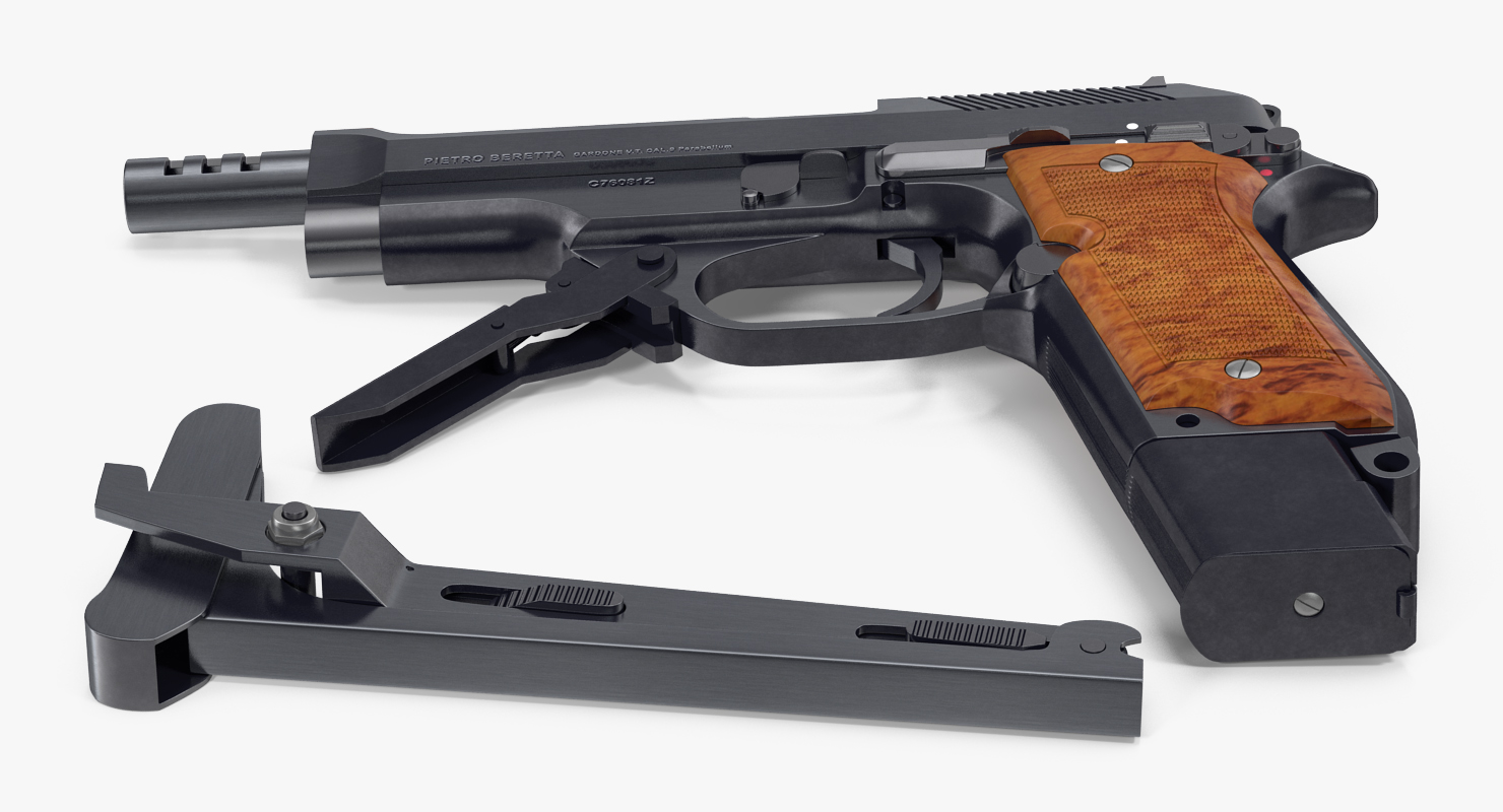 Pistol Beretta 93R with Buttstock is a high quality, photo real 3d model that will enhance detail and realism to any of your rendering projects. The model has a fully textured, detailed design that allows for close-up renders, and was originally modeled in 3ds Max 2020 and rendered with V-Ray. Renders have no postprocessing!