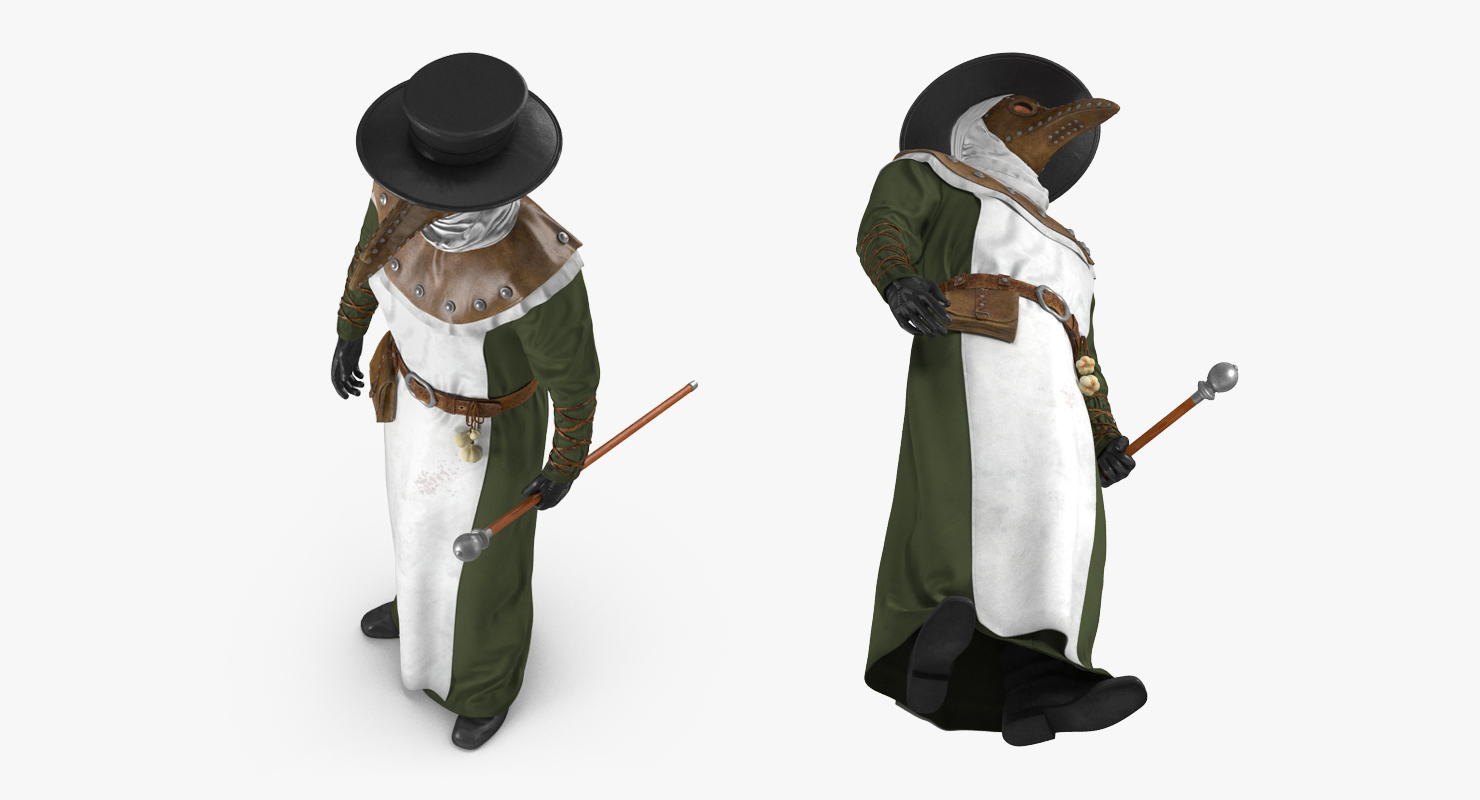 Plague Doctor Standing Pose is a high quality, photo real 3d model that will enhance detail and realism to any of your rendering projects. The model has a fully textured, detailed design that allows for close-up renders, and was originally modeled in 3ds Max 2020 and rendered with V-Ray. Renders have no postprocessing!