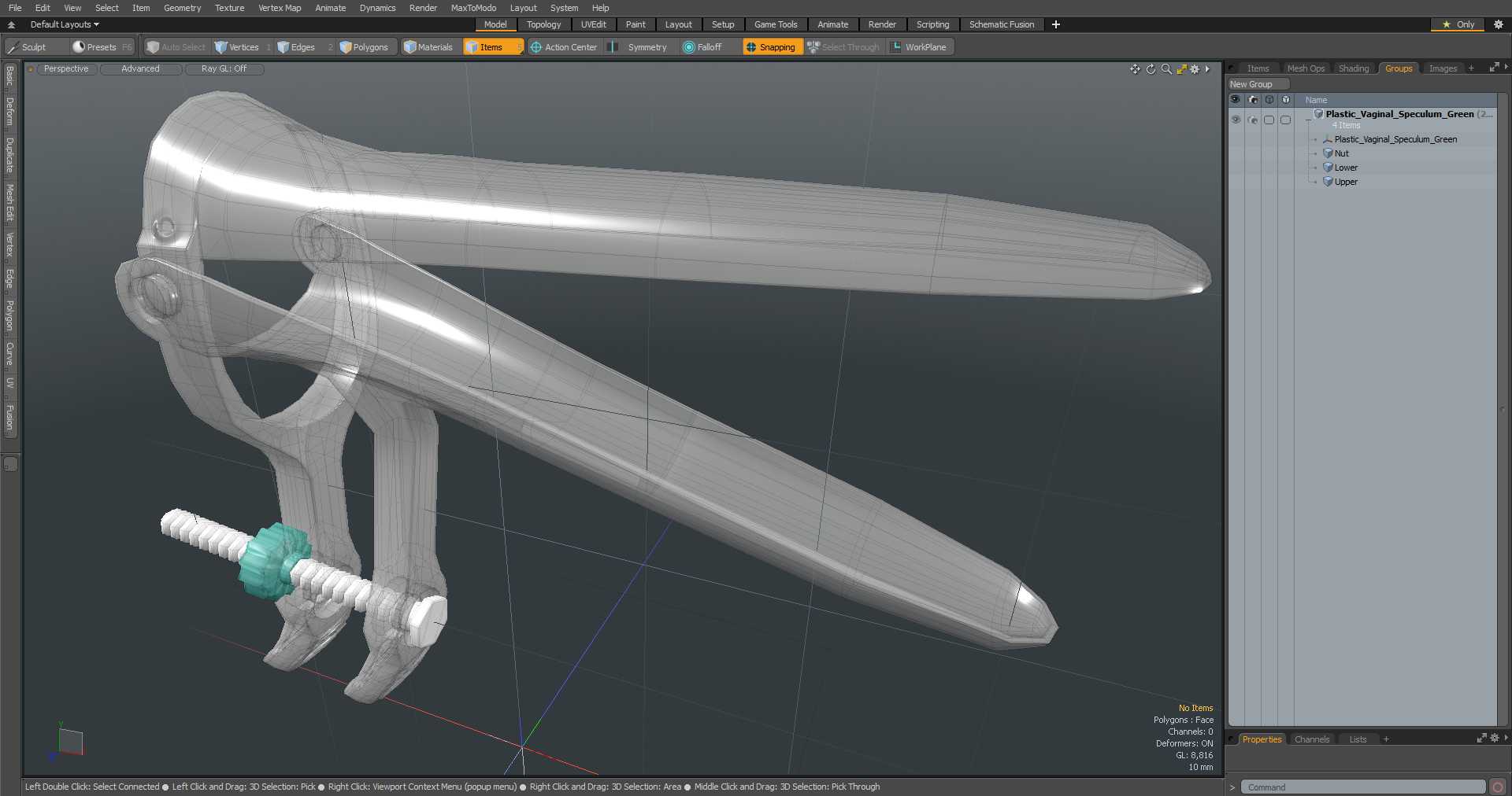 Plastic Vaginal Speculum Green is a high quality, photo real 3d model that will enhance detail and realism to any of your rendering projects. The model has a fully textured, detailed design that allows for close-up renders, and was originally modeled in 3ds Max 2020 and rendered with V-Ray. Renders have no postprocessing!