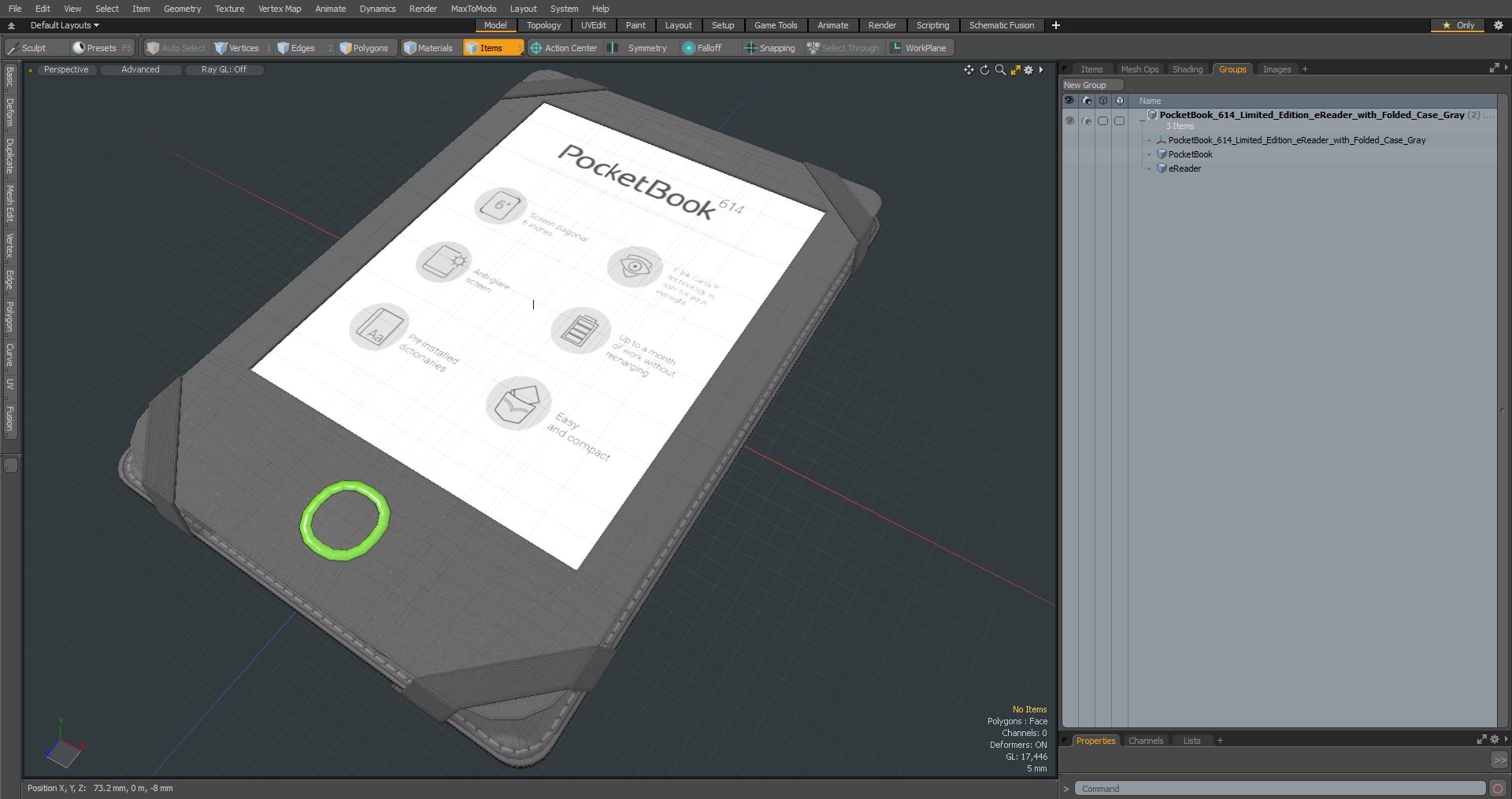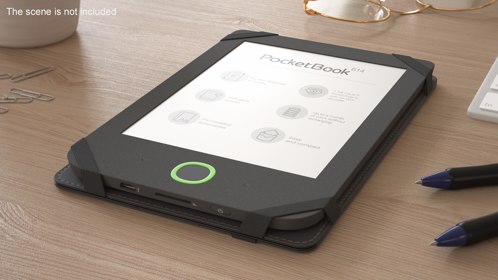 PocketBook 614 Limited Edition eReader with Folded Case Gray is a three-dimensional model of electronic book reader with case (cover, wrap or coat), which is a special device designed to provide a portable and convenient platform for reading digital books.