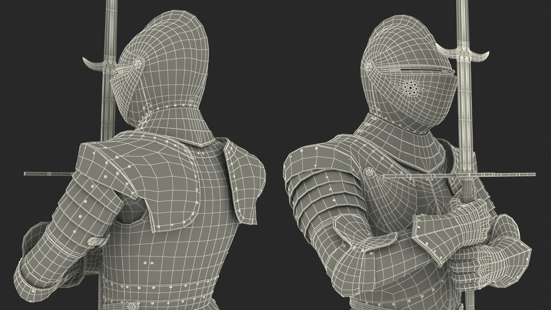 Polished Medieval Knight Plate Armor holding Zweihander is a high quality, photo real 3d model that will enhance detail and realism to any of your rendering projects. The model has a fully textured, detailed design that allows for close-up renders, and was originally modeled in 3ds Max 2020 and rendered with V-Ray. Renders have no postprocessing!