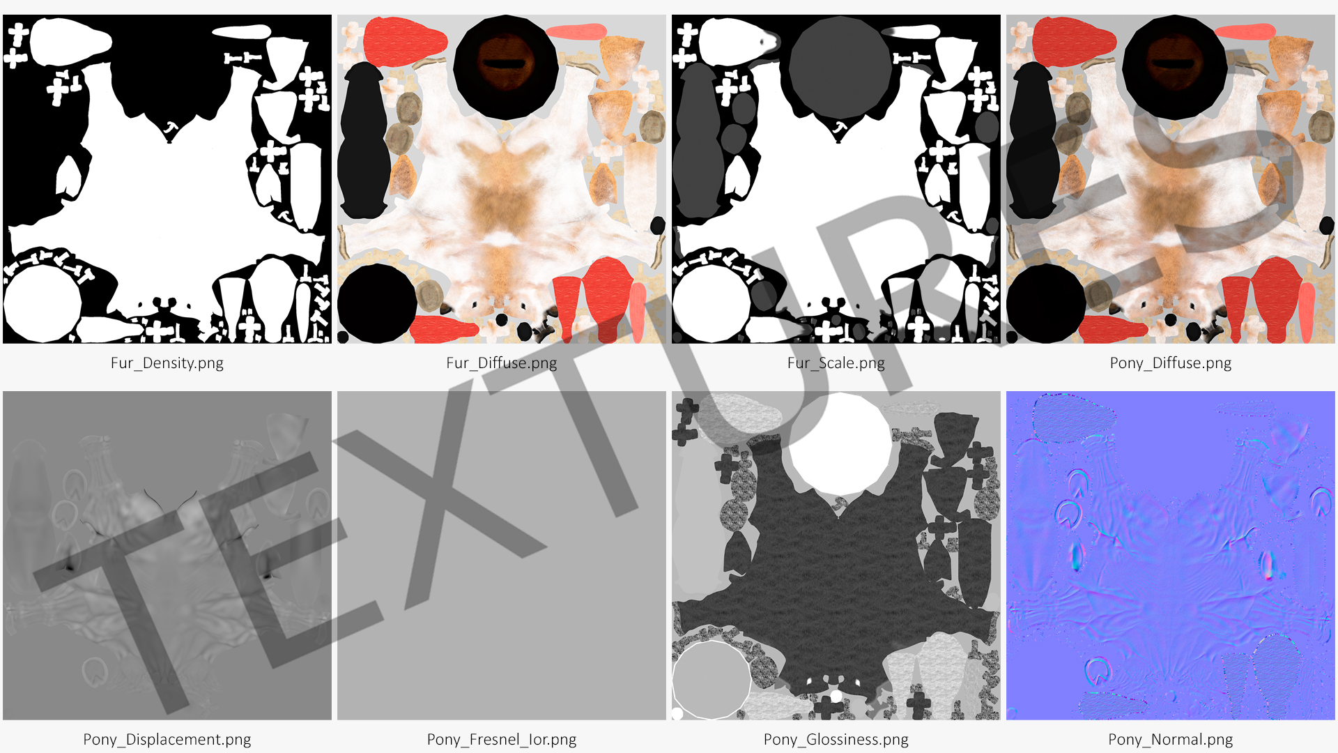 Pony with Long Mane Grazing in a Meadow Fur is a high quality, photo real 3d model that will enhance detail and realism to any of your rendering projects. The model has a fully textured, detailed design that allows for close-up renders, and was originally modeled in 3ds Max 2020 and rendered with V-Ray. Renders have no postprocessing!