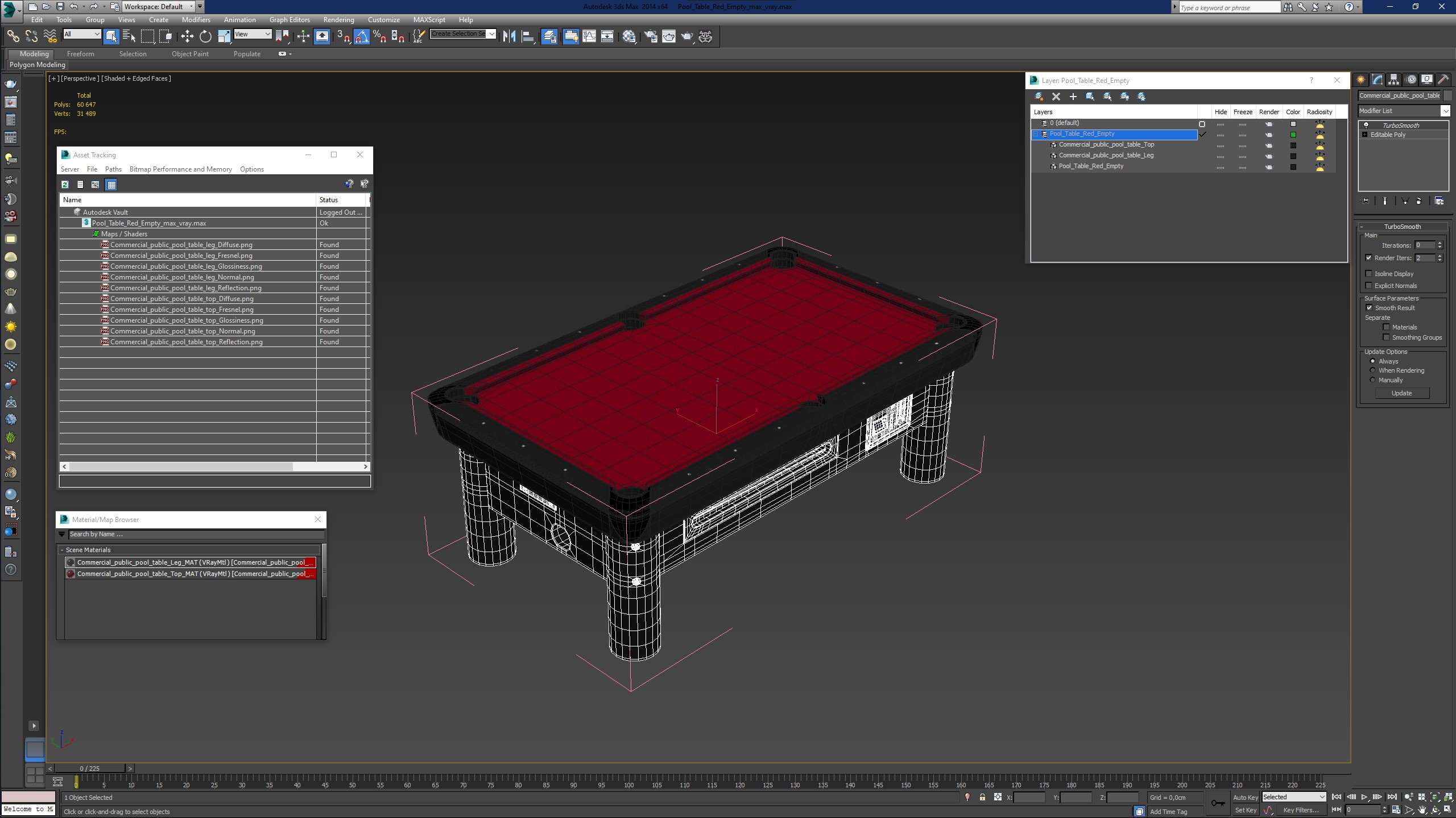 Pool Table Red Empty is a high quality, photo real 3d model that will enhance detail and realism to any of your rendering projects. The model has a fully textured, detailed design that allows for close-up renders, and was originally modeled in 3ds Max 2020 and rendered with V-Ray. Renders have no postprocessing!