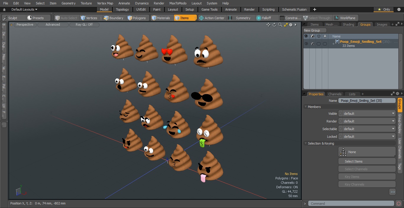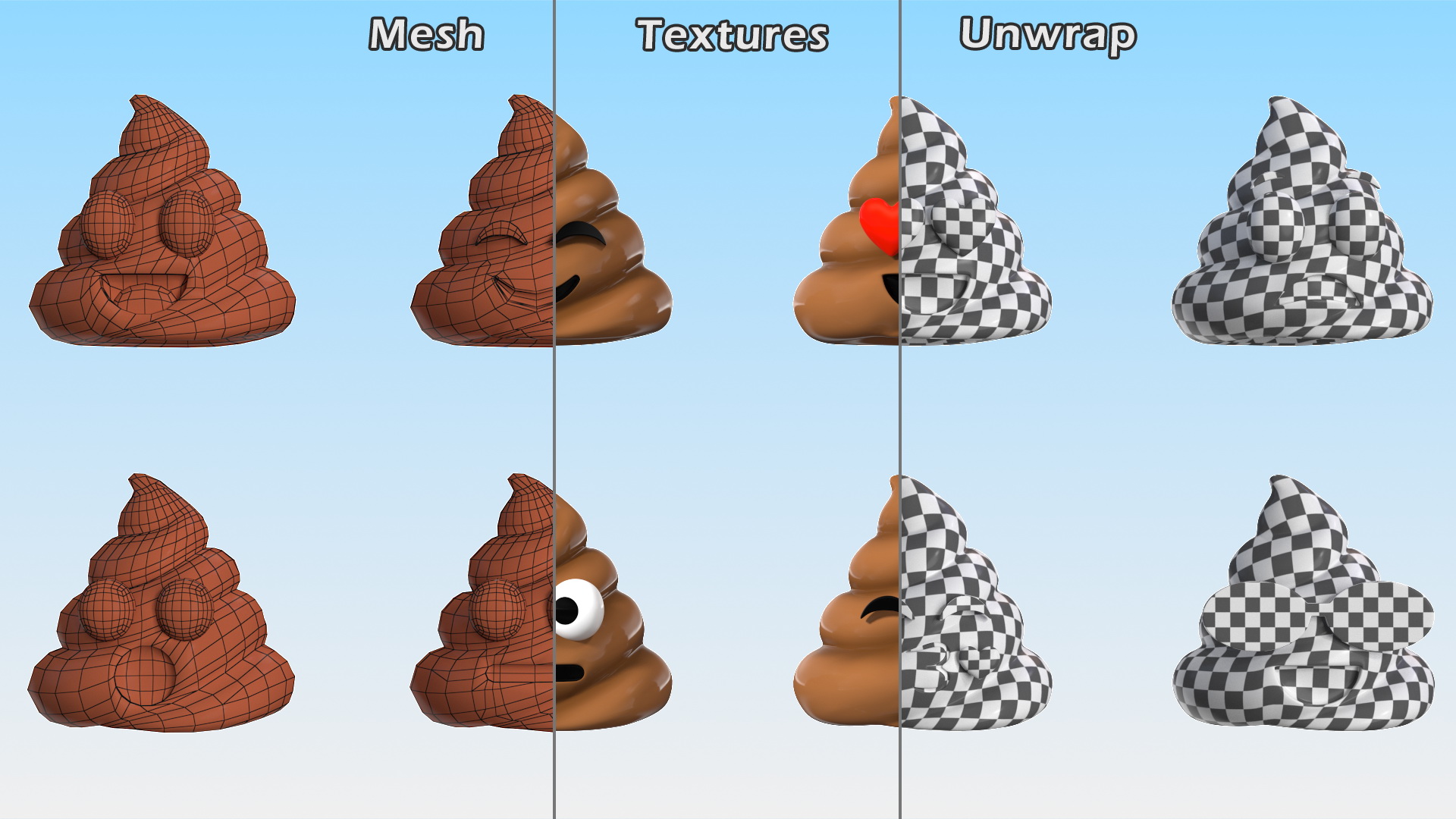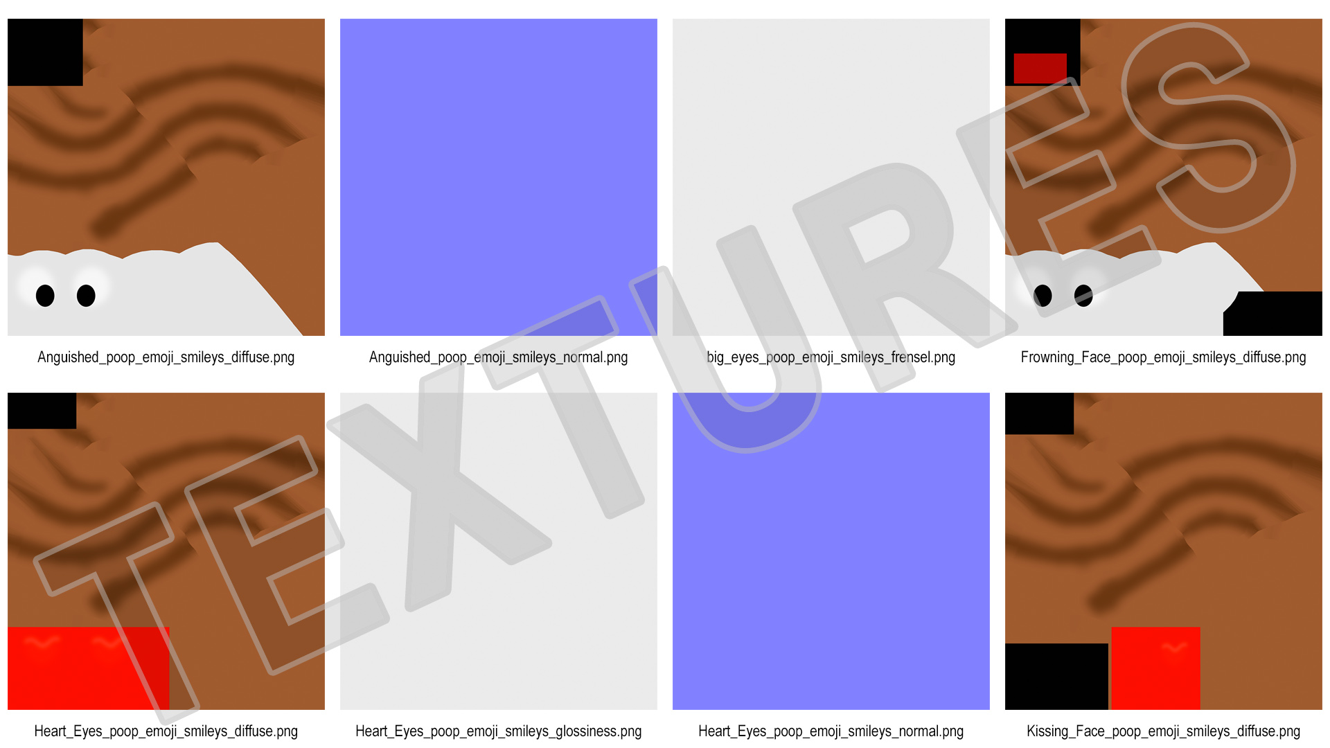 Poop Emoji Smiling Set is a high quality, photo real 3d model that will enhance detail and realism to any of your rendering projects. The model has a fully textured, detailed design that allows for close-up renders, and was originally modeled in 3ds Max 2020 and rendered with V-Ray. Renders have no postprocessing!
