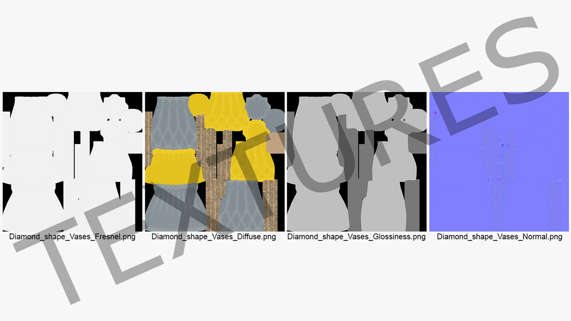 All textures and materials are included and mapped. (All colors can be easily modified.)