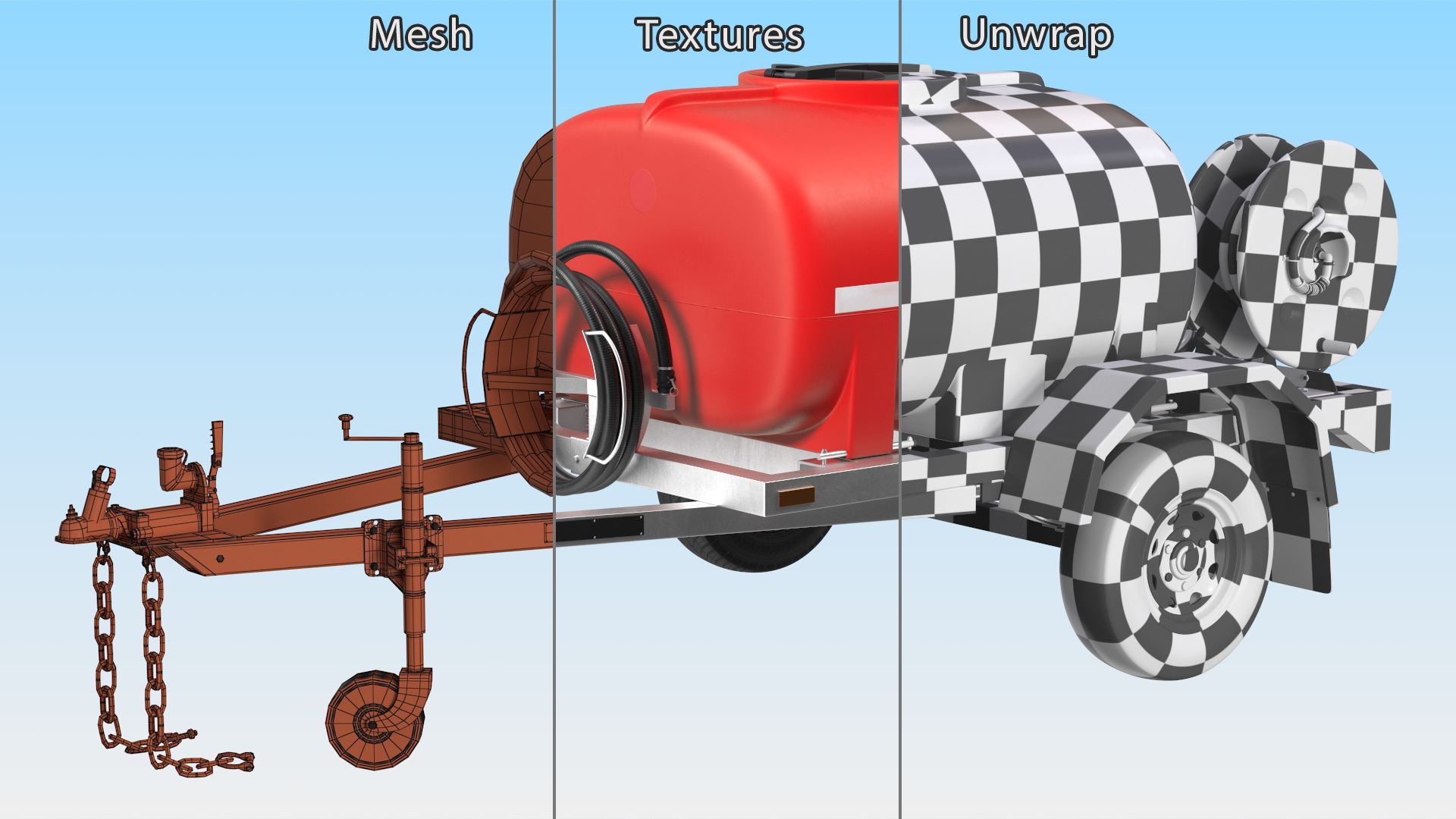Portable Fire Tank Trailer with Pump is a three-dimensional model of portable and mobile fire-fighting wheeled trailer with water tank, pump and hose, which used to combat wildfires, industrial fires and more.