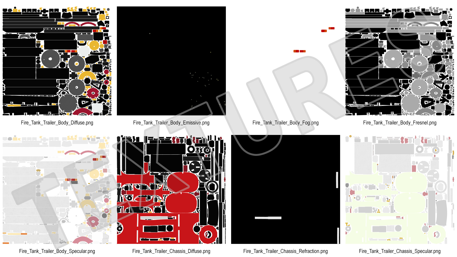 All textures and materials are included and mapped. (All colors can be easily modified.)