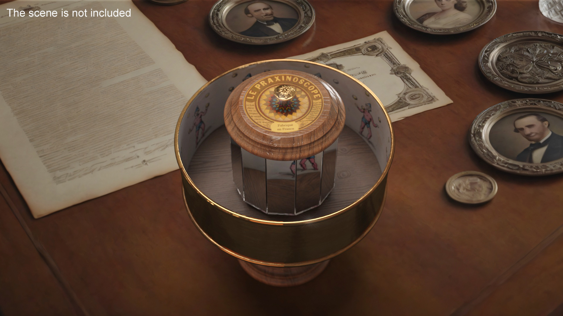 Praxinoscope Optical Animation Toy is a high quality, photo real 3d model that will enhance detail and realism to any of your rendering projects. The model has a fully textured, detailed design that allows for close-up renders, and was originally modeled in 3ds Max 2020 and rendered with V-Ray. Renders have no postprocessing!