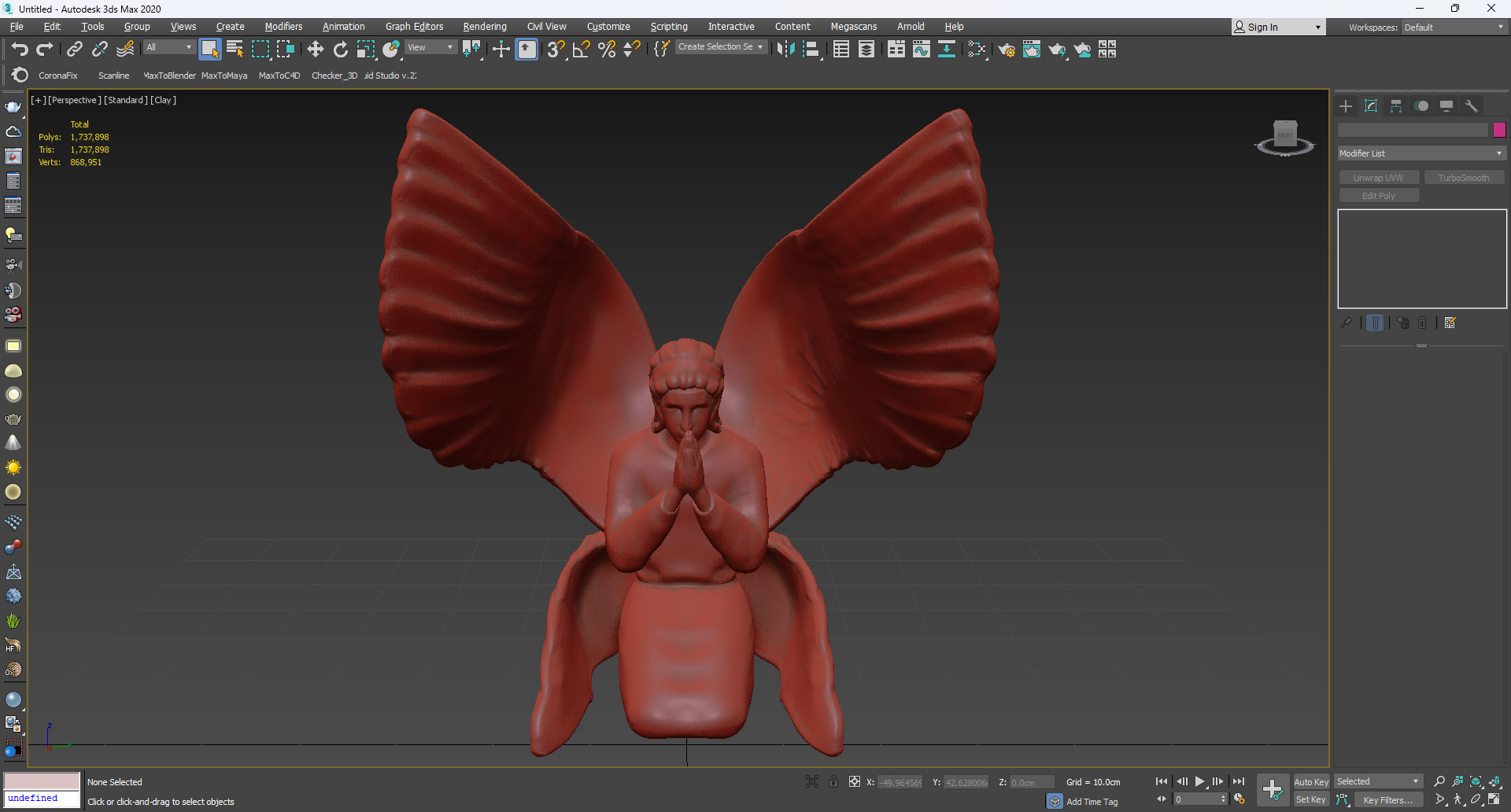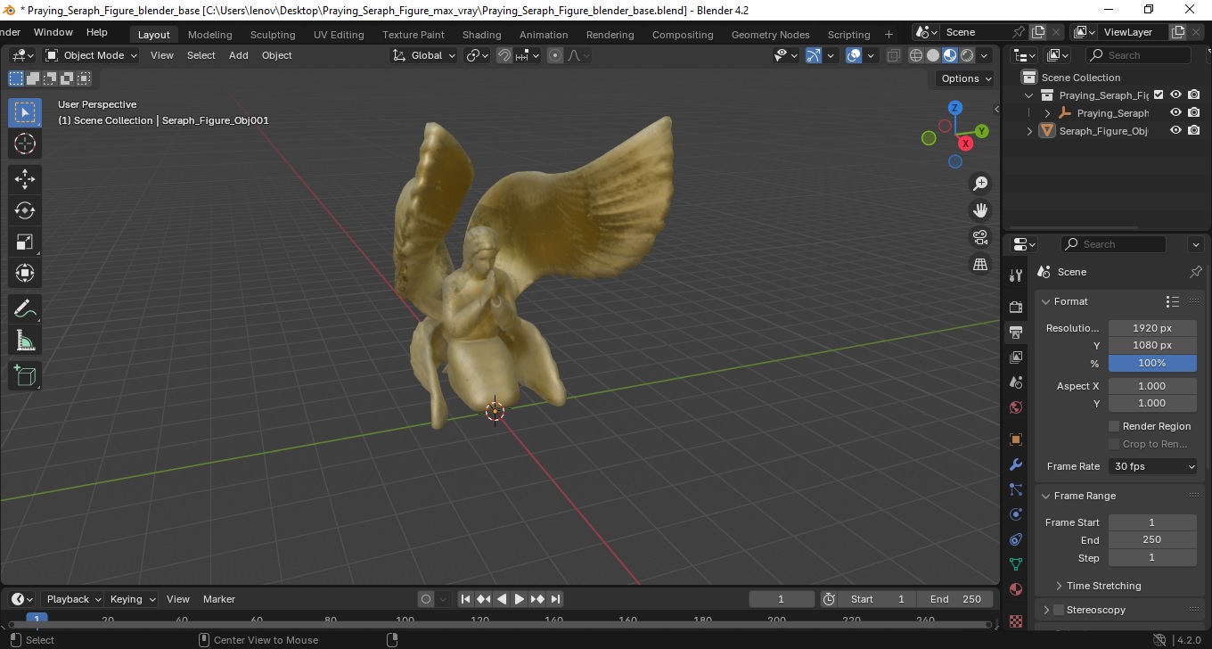 Praying Seraph Figure for 3D Print is a high-quality 3D model, ready to be used for 3D printing projects. The model's geometry is solid, allowing the forms and details to be replicated excellently in a 3D print. The product renders were created in 3Ds Max with V-Ray to demonstrate how the model may look with materials applied. The renders have no post-processing!