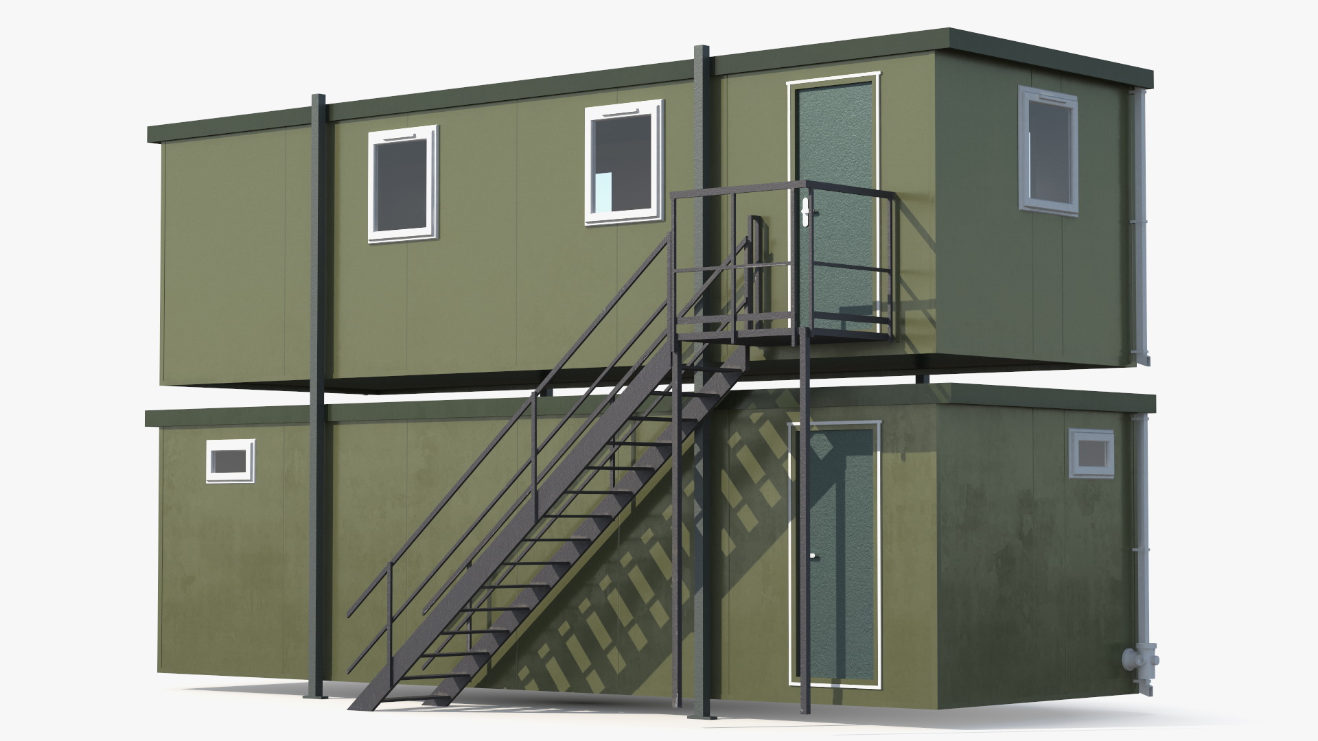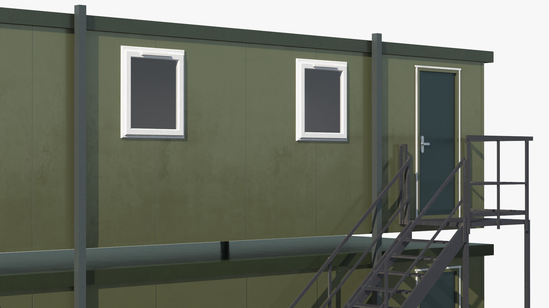 Prefabricated Portable Two Story Building is a high quality, photo real 3d model that will enhance detail and realism to any of your rendering projects. The model has a fully textured, detailed design that allows for close-up renders, and was originally modeled in 3ds Max 2020 and rendered with V-Ray. Renders have no postprocessing!
