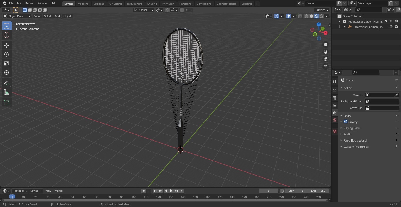 Professional Carbon Fiber Badminton Racket is a three-dimensional model of popular badminton racket which is a primary tool in the sport of badminton and which be used for fun badminton playing.