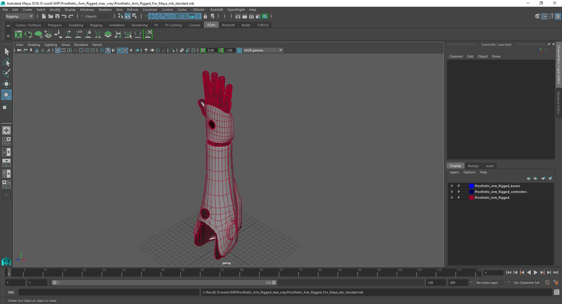 Prosthetic Arm Rigged for Maya is fully rigged and is ready to be animated in Maya. You can easily position it the way you need or animate it the way your project requires. See the screenshots to get an idea of how rigging works. The pose of the model on the render images is an example and can be recreated using rig, it is not initially included into the product.