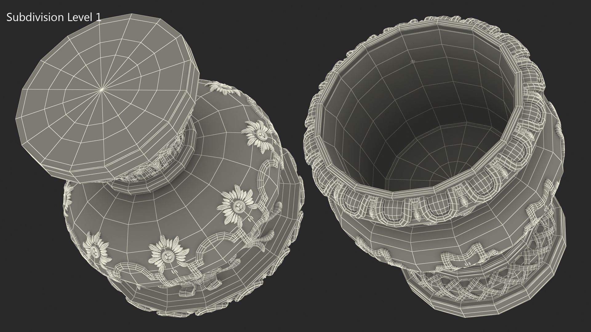 Provence Planter Urn h45 is a three-dimensional model of a vintage, ornate, classic, widespread outdoor urn accessory (flowerpot, vat, tub or casket), which is a popular garden decorative container (planterette).