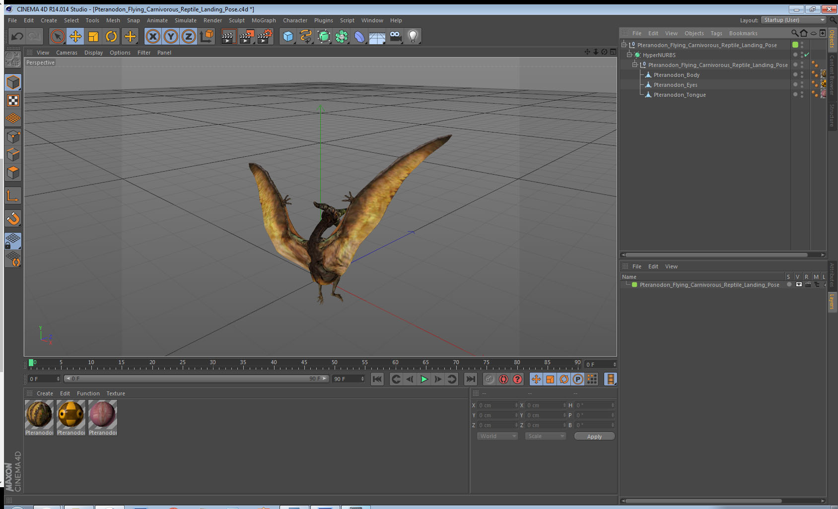 Pteranodon Flying Carnivorous Reptile Landing Pose is a high quality, photo real 3d model that will enhance detail and realism to any of your rendering projects. The model has a fully textured, detailed design that allows for close-up renders, and was originally modeled in 3ds Max 2020 and rendered with V-Ray. Renders have no postprocessing!