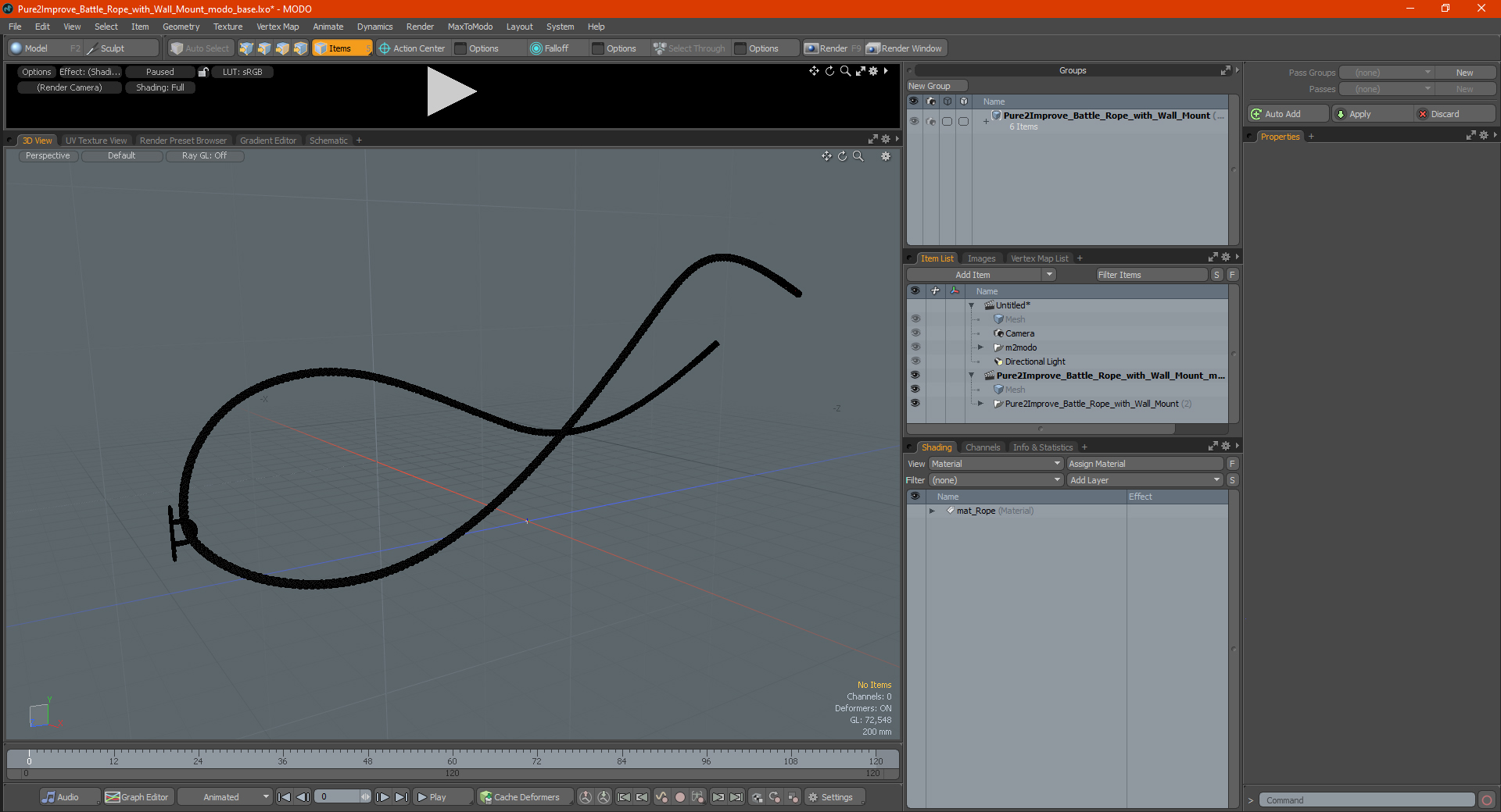 Pure2Improve Battle Rope with Wall Mount is a high quality, photo real 3d model that will enhance detail and realism to any of your rendering projects. The model has a fully textured, detailed design that allows for close-up renders, and was originally modeled in 3ds Max 2020 and rendered with V-Ray. Renders have no postprocessing!