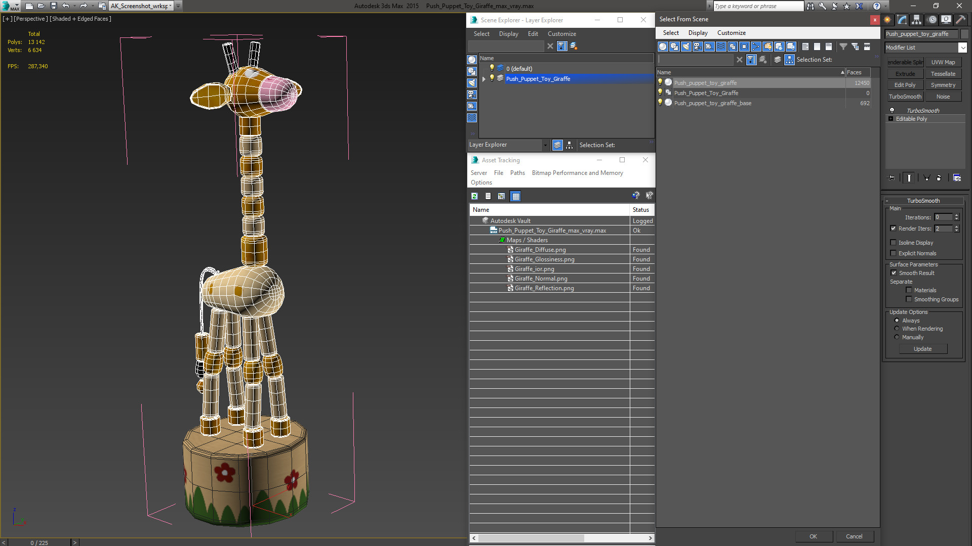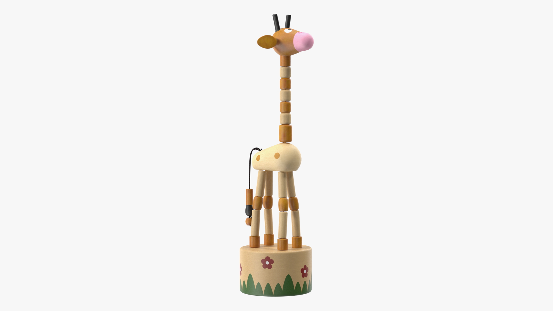 Push Puppet Toy Giraffe is a high quality, photo real 3d model that will enhance detail and realism to any of your rendering projects. The model has a fully textured, detailed design that allows for close-up renders, and was originally modeled in 3ds Max 2020 and rendered with V-Ray. Renders have no postprocessing!