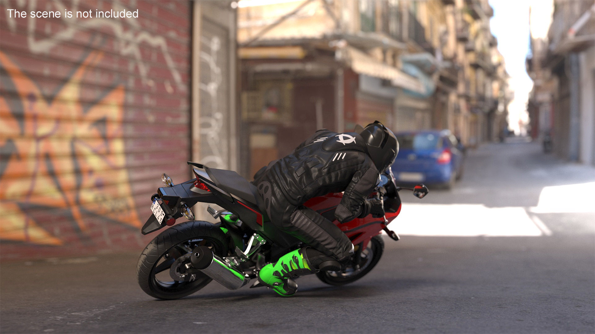 Racing Motorcycle with Rider Turning is a high quality, photo real 3d model that will enhance detail and realism to any of your rendering projects. The model has a fully textured, detailed design that allows for close-up renders, and was originally modeled in 3ds Max 2020 and rendered with V-Ray. Renders have no postprocessing!