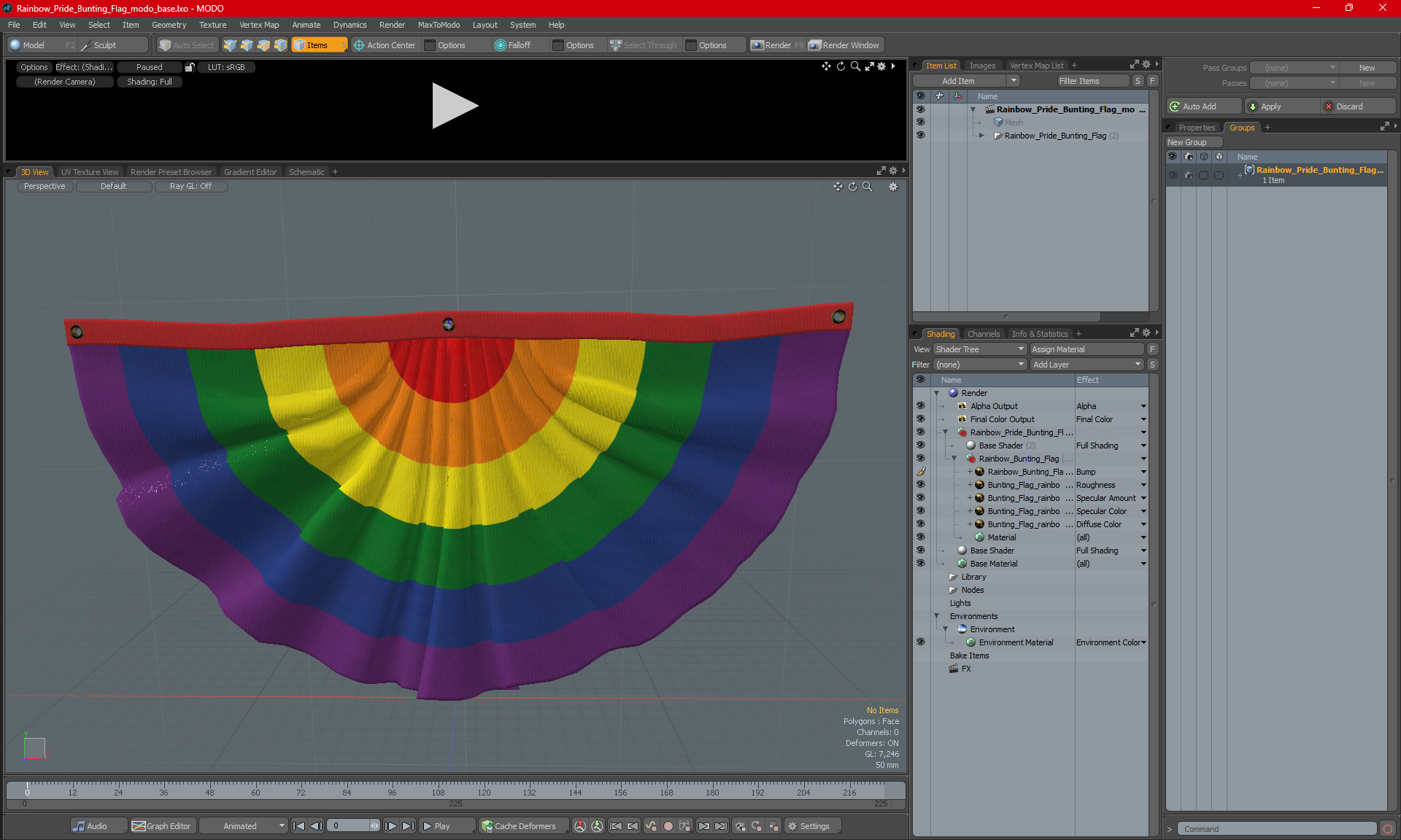 Rainbow Pride Bunting Flag is a 3D model of pleated semi-circle flag (fan flag) which is a symbol of LGBT rights, gay pride, LGBT pride, LGBT community, and the spectrum of human sexuality or gender.