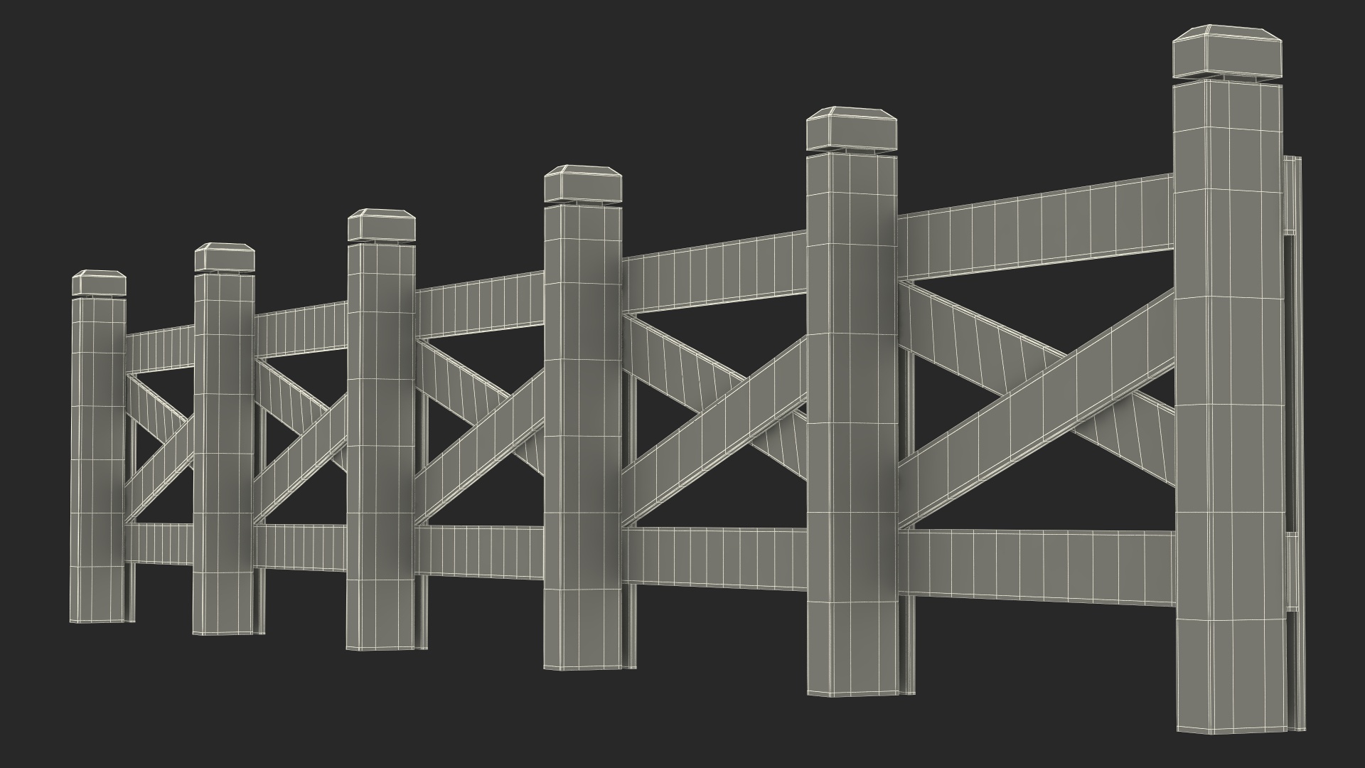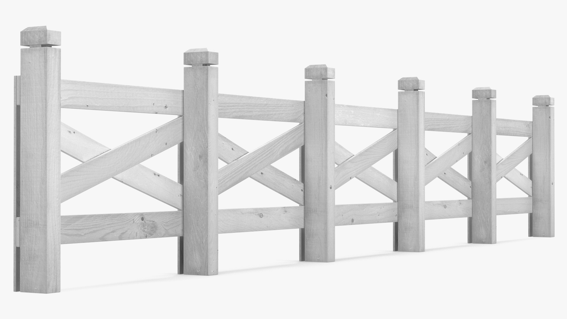 Ranch Fence White is a three-dimensional model of farm (ranch) wooden fence segment which is a part of traditional barrier used in agricultural settings to enclose and delineate property boundaries, protect livestock, and provide security.