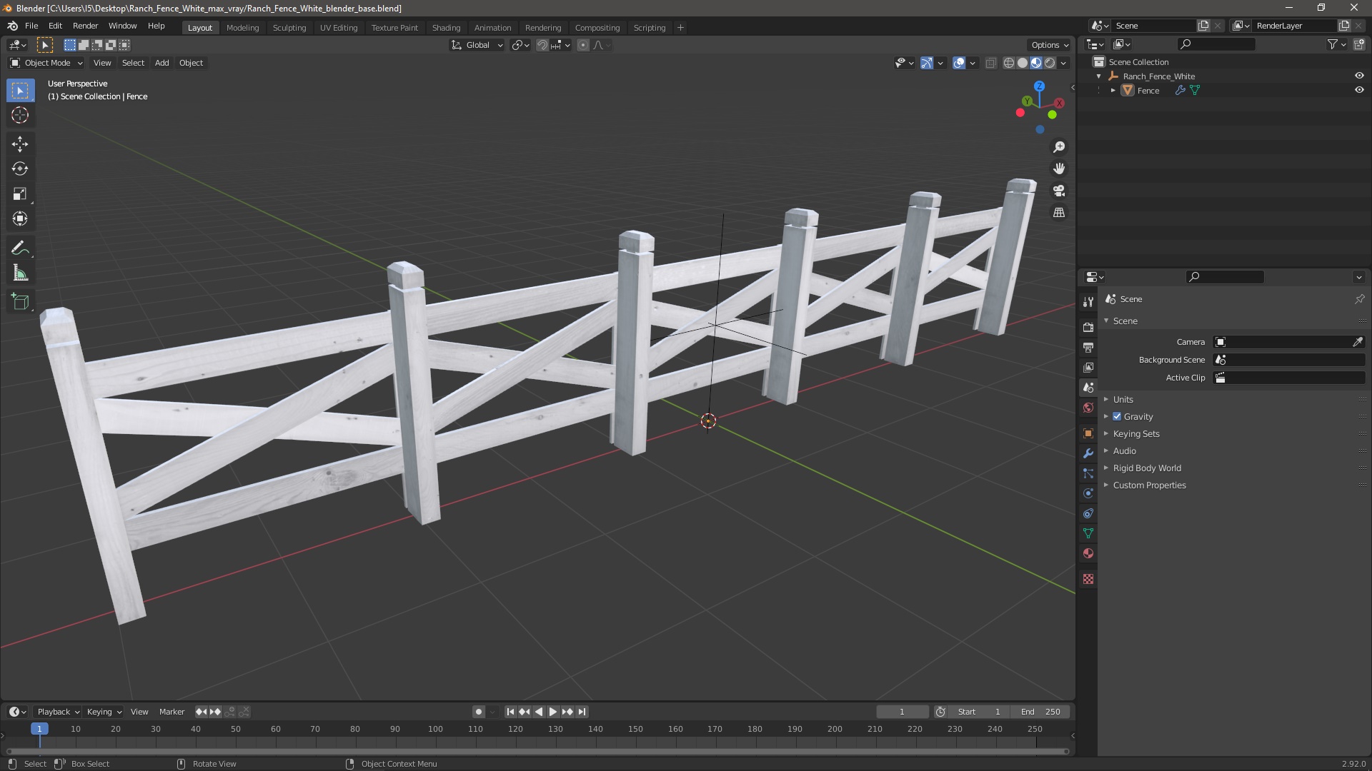 Ranch Fence White is a high quality, photo real 3d model that will enhance detail and realism to any of your rendering projects. The model has a fully textured, detailed design that allows for close-up renders, and was originally modeled in 3ds Max 2020 and rendered with V-Ray. Renders have no postprocessing!