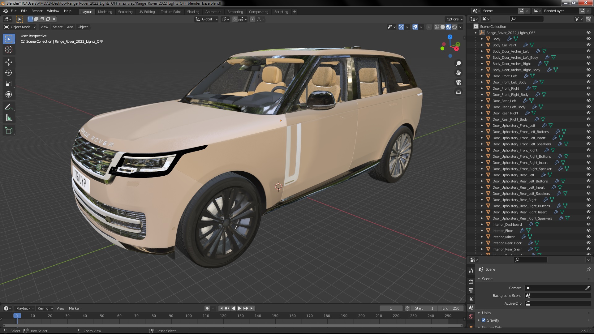 Range Rover 2022 Lights OFF is a 3d model of original luxury SUV and the top-of-the-line Range Rover model.