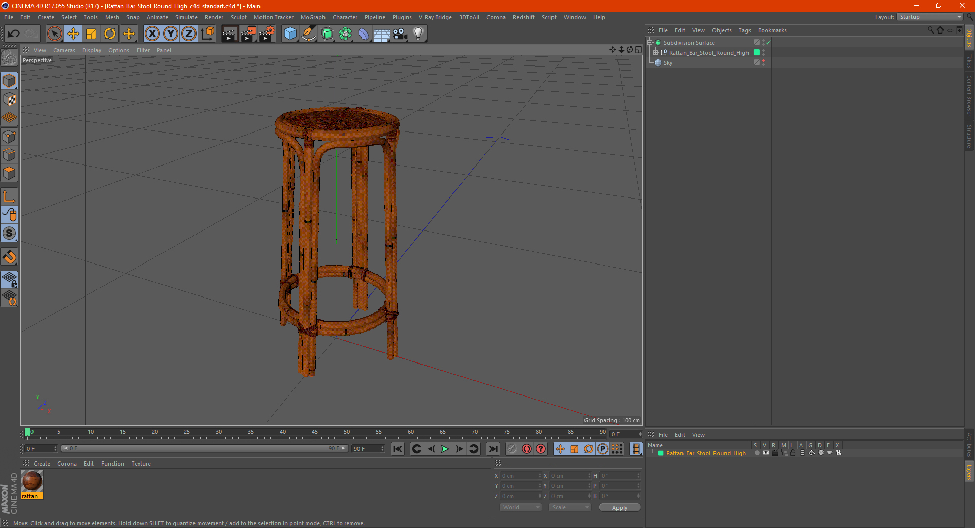 Rattan Bar Stool Round High is a high quality, photo real 3d model that will enhance detail and realism to any of your rendering projects. The model has a fully textured, detailed design that allows for close-up renders, and was originally modeled in 3ds Max 2020 and rendered with V-Ray. Renders have no postprocessing!