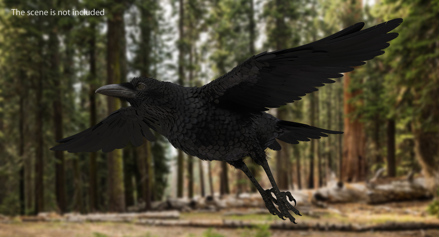 Raven Flying is a high quality, photo real 3d model that will enhance detail and realism to any of your rendering projects. The model has a fully textured, detailed design that allows for close-up renders, and was originally modeled in 3ds Max 2020 and rendered with V-Ray. Renders have no postprocessing!