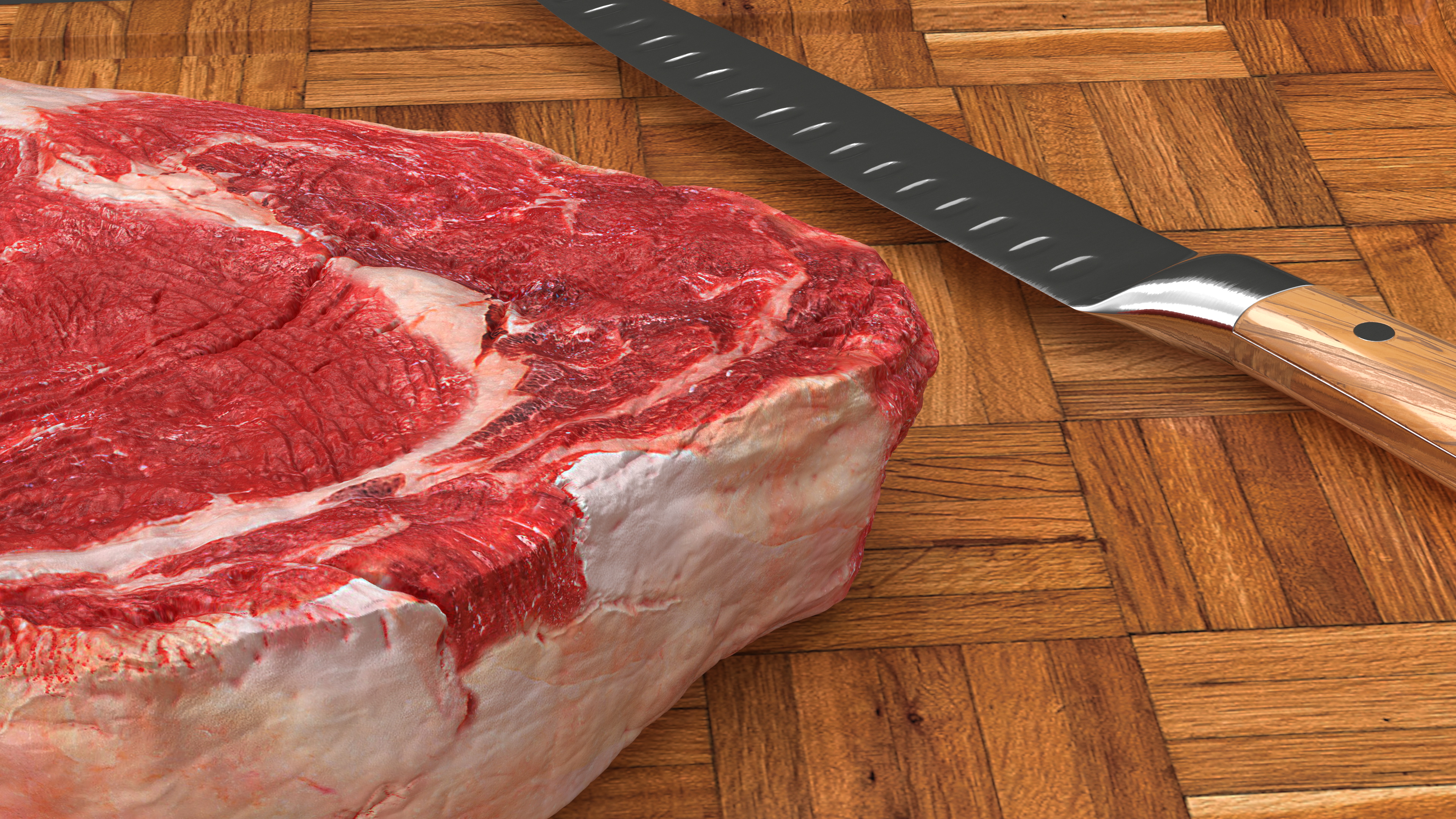 Raw Steak on Cutting Board with Knife and Fork is a high quality, photo real 3d model that will enhance detail and realism to any of your rendering projects. The model has a fully textured, detailed design that allows for close-up renders, and was originally modeled in 3ds Max 2020 and rendered with V-Ray. Renders have no postprocessing!