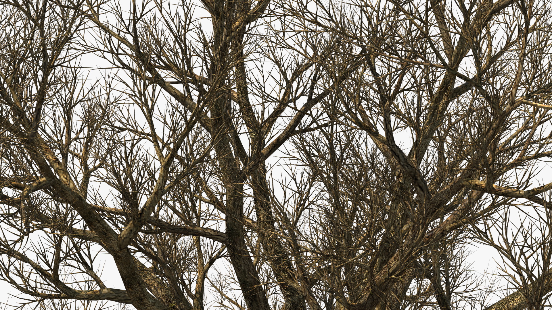 Realistic Bare Oak Tree is a three-dimensional model of winter season white oak (Quercus alba) which is a naked (without foliage or leaves) deciduous tree, and which is native to North America.