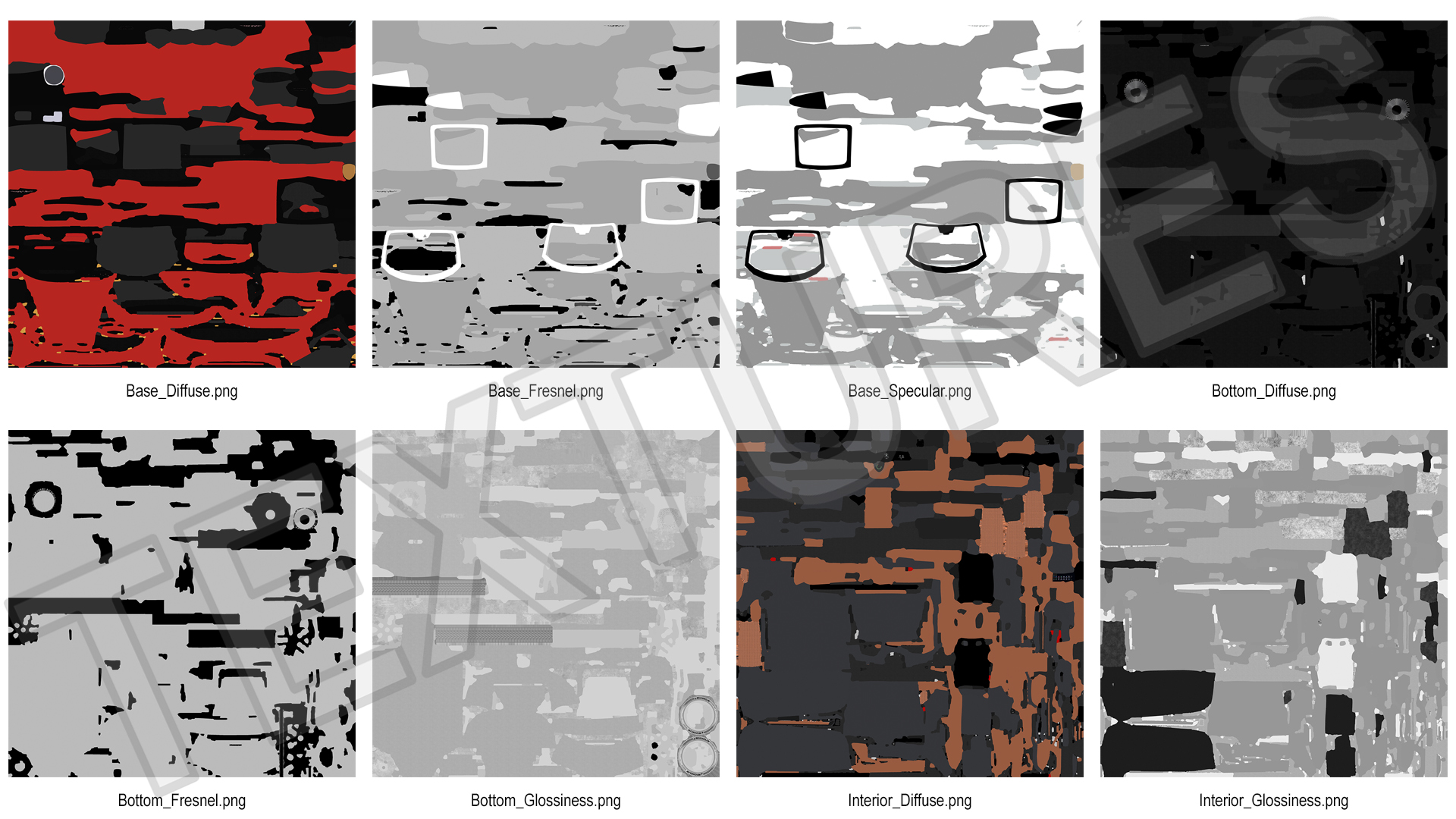 All textures and materials are included and mapped. (All colors can be easily modified.)