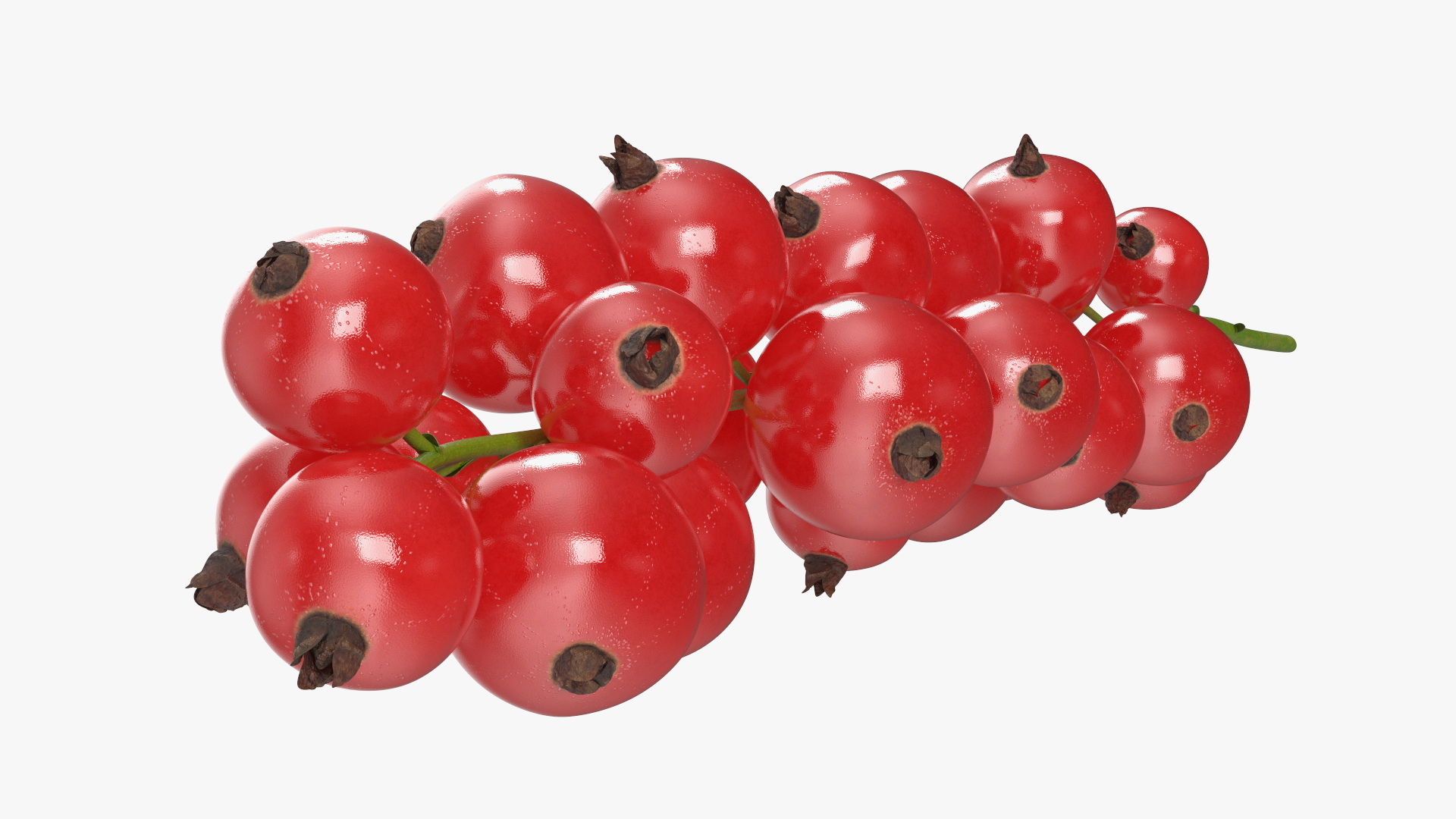 Red Currant on Stem is a 3d model of a cluster of ripe red currants, elegantly arranged on their stems, showcasing the vibrant and appealing characteristics of this popular fruit.