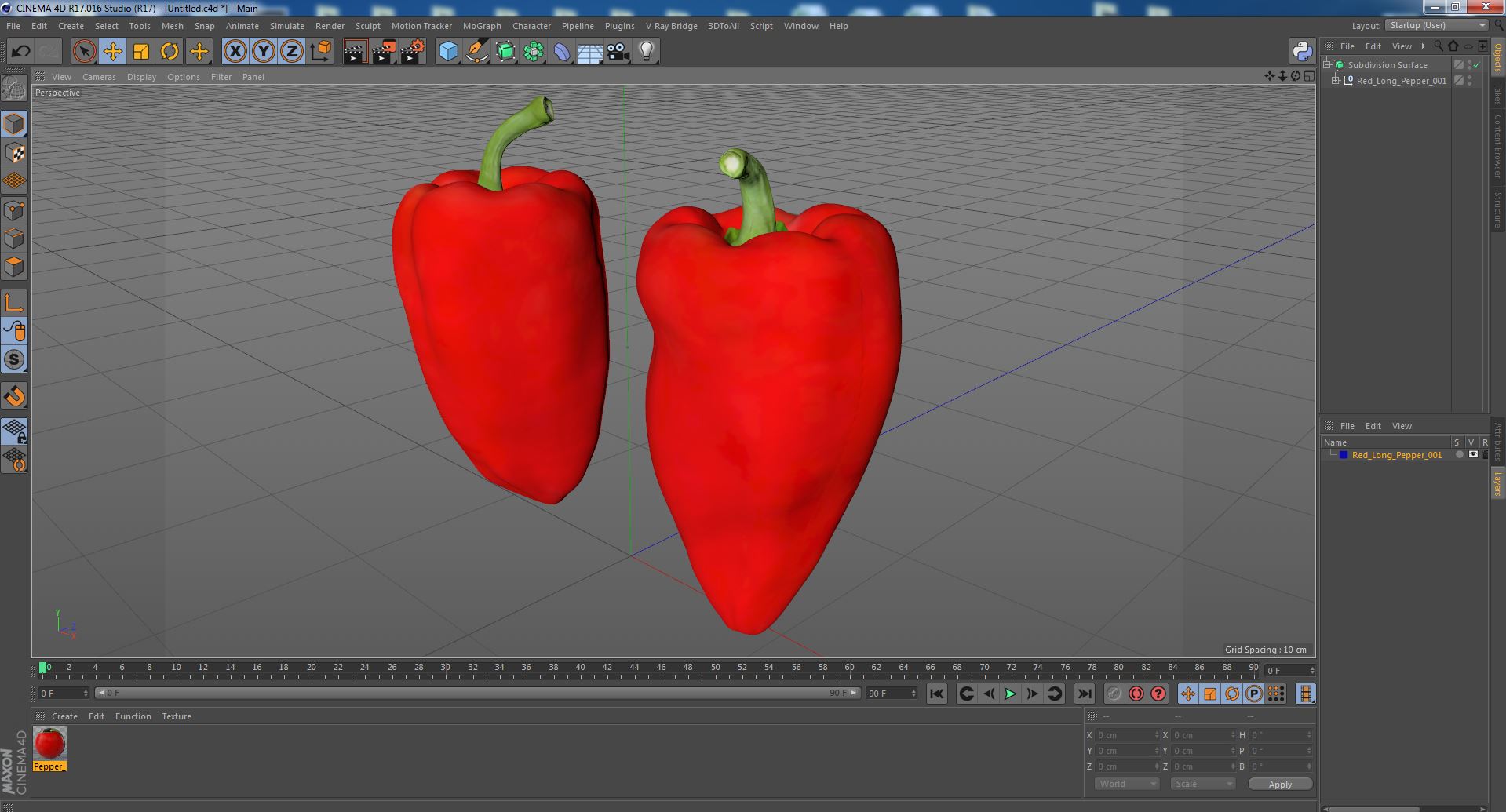 Red Long Pepper is a three-dimensional model of well known fruit of a popular non-spicy cultivar of pepper, which used for salad dishes cooking, pizza baking, vegetable frying and more.