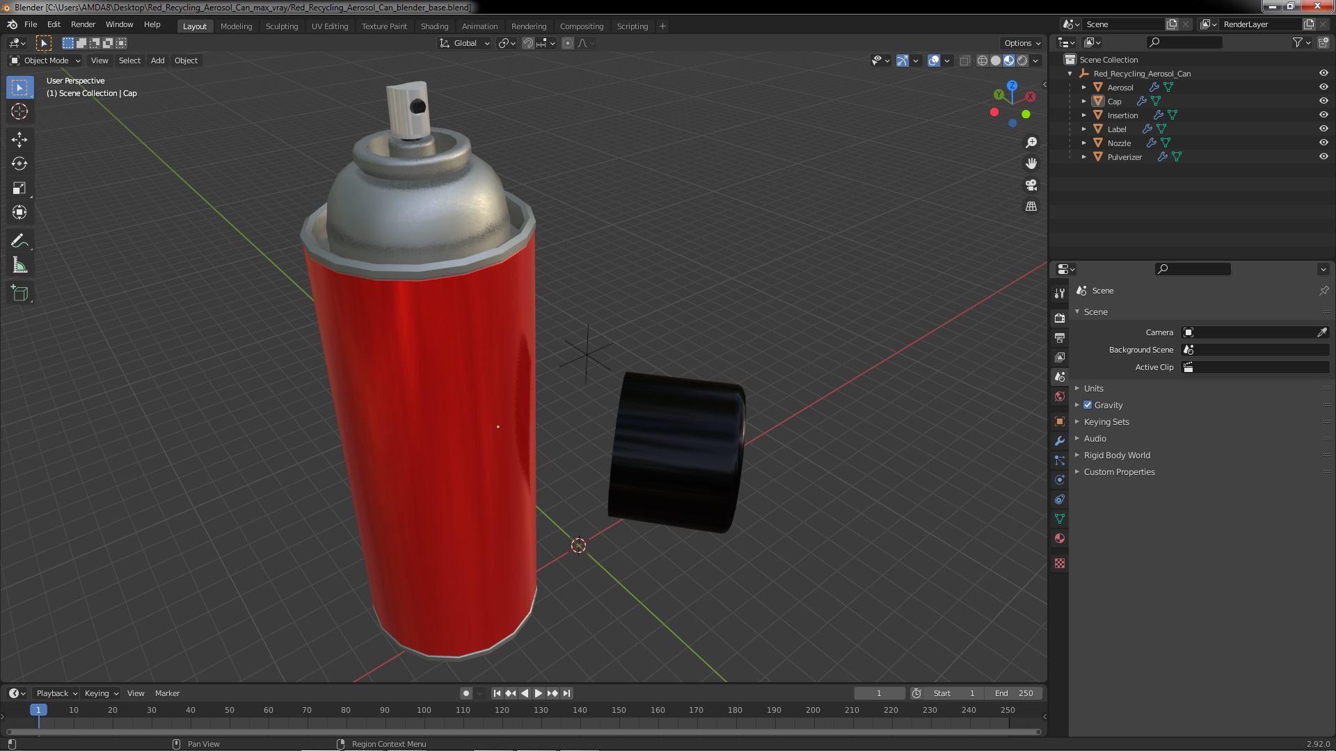 Red Recycling Aerosol Can is a high quality, photo real 3d model that will enhance detail and realism to any of your rendering projects. The model has a fully textured, detailed design that allows for close-up renders, and was originally modeled in 3ds Max 2020 and rendered with V-Ray. Renders have no postprocessing!