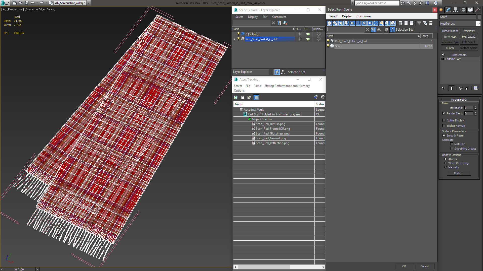 Red Scarf Folded in Half is a high quality, photo real 3d model that will enhance detail and realism to any of your rendering projects. The model has a fully textured, detailed design that allows for close-up renders, and was originally modeled in 3ds Max 2020 and rendered with V-Ray. Renders have no postprocessing!