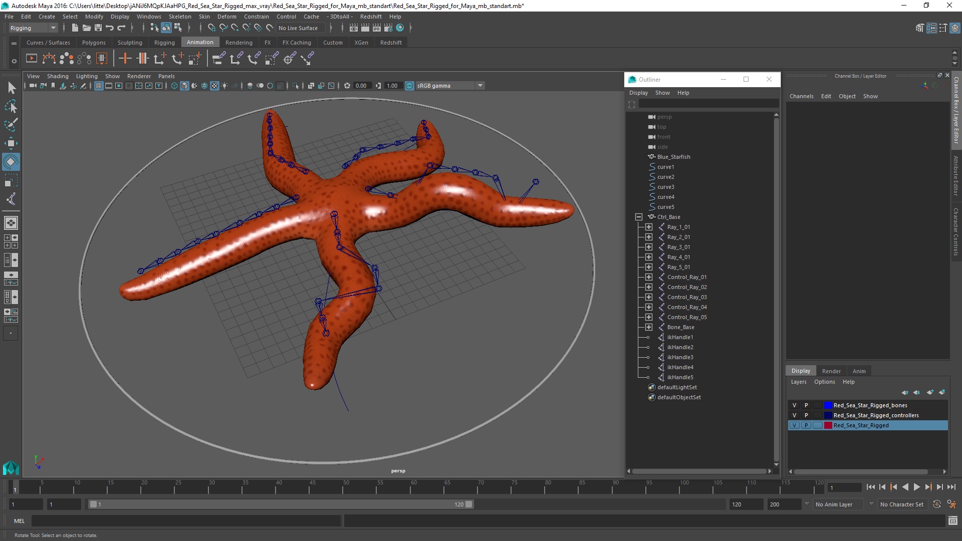Red Sea Star Rigged for Maya is fully rigged and is ready to be animated in Maya. You can easily position it the way you need or animate it the way your project requires. See the screenshots to get an idea of how rigging works. The pose of the model on the render images is an example and can be recreated using rig, it is not initially included into the product.