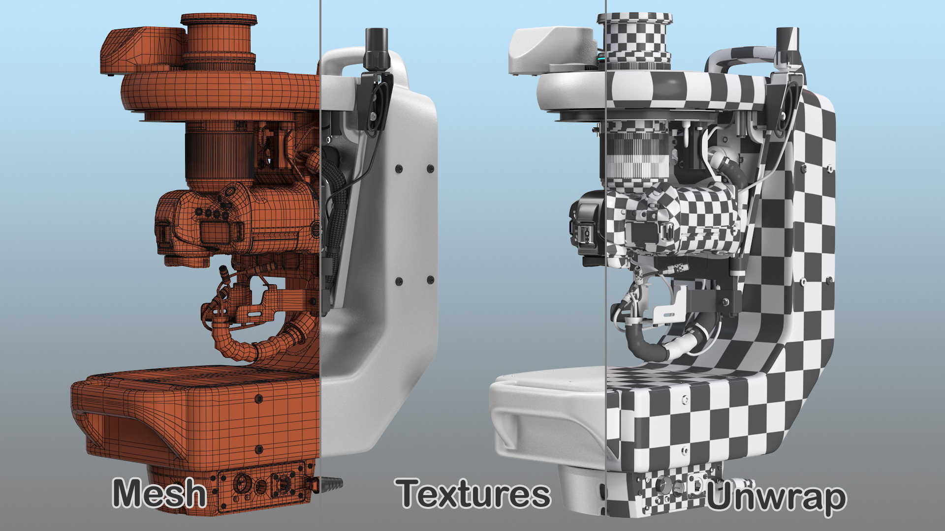 Remote Control Robotic Camera System with Digital Cam is a high quality, photo real 3d model that will enhance detail and realism to any of your rendering projects. The model has a fully textured, detailed design that allows for close-up renders, and was originally modeled in 3ds Max 2020 and rendered with V-Ray. Renders have no postprocessing!