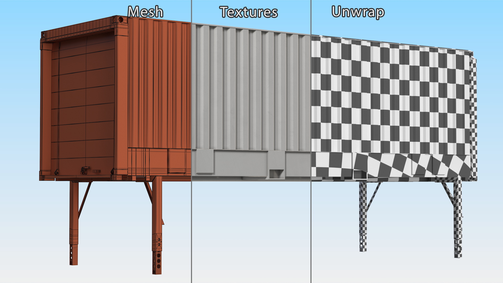 Replacement Body Container is a three-dimensional model of swap body container which is a swop body container on sturdy metal frame with adjustable metal legs.